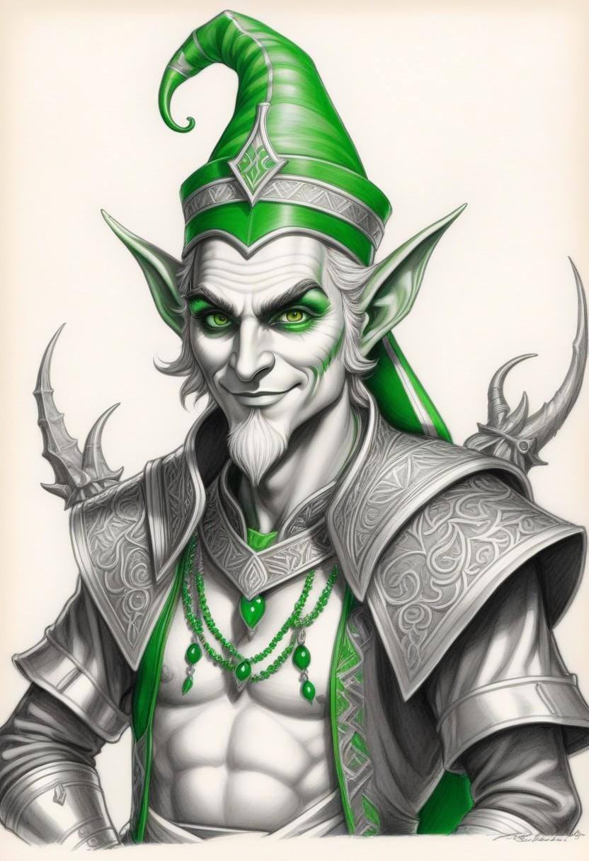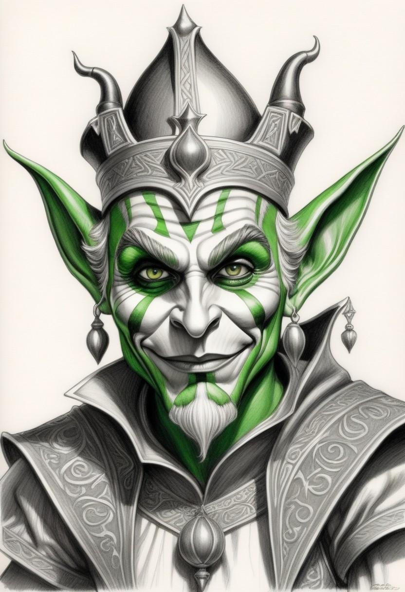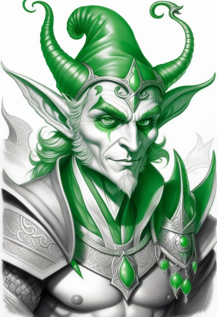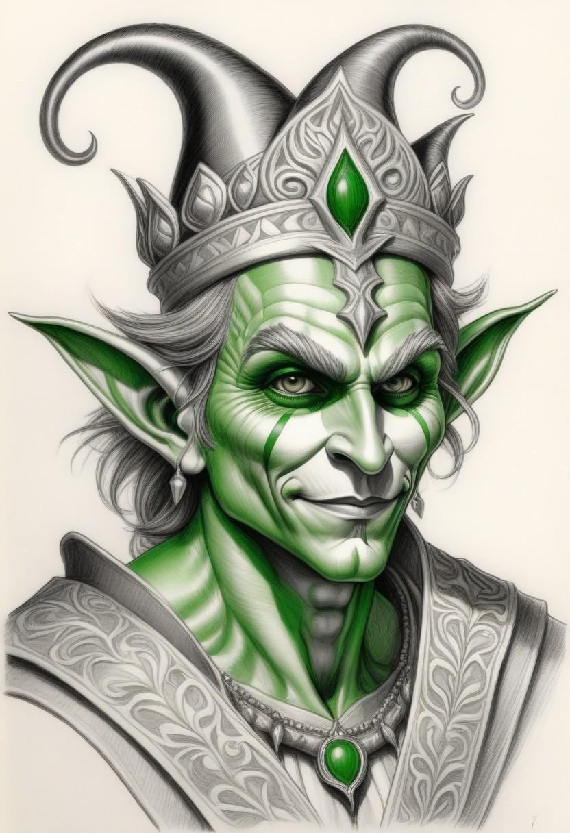 Gobras was originally the jester of the court of gods. A god of many forms and talents, he is the protector of the Gobelar (Goblin) and the Gereshti (Gremlin) races. He appears as a goblin sized, green faced jester with flamboyant clothing. A few Gnoos (Gnomes), especially those devoted to the production of clockwork gizmos, worship Gobras, a thing that creates an unbridgeable gap between those Gnomes and their Dwarven cousins, who have a tradition of enmity with most Goblins. Gobras appears in such a variety of forms that not even his closest worshippers can recognize him. And all those who wear masks or disguises as part of their professions, like assassins, spies and actors, often swear by Gobras' name.
