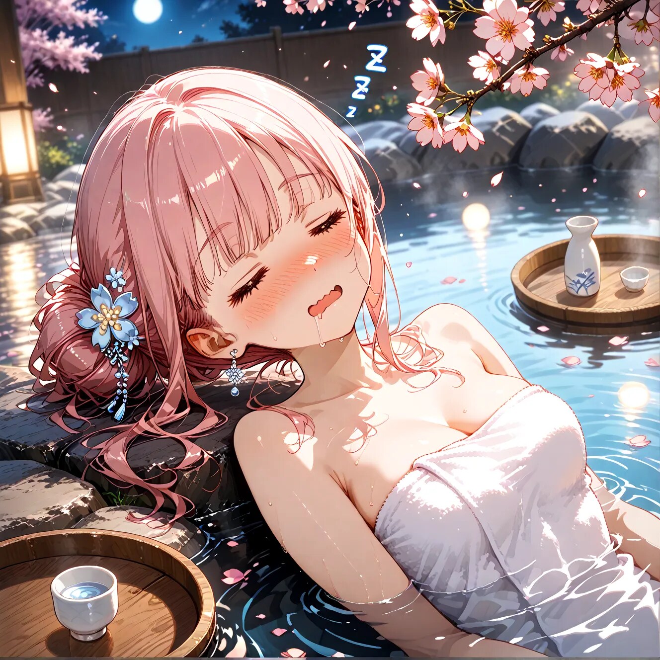 やったことないですけど、温泉で飲んだら美味しいでしょうね…。酔いが回って寝ちゃわないようにですね。