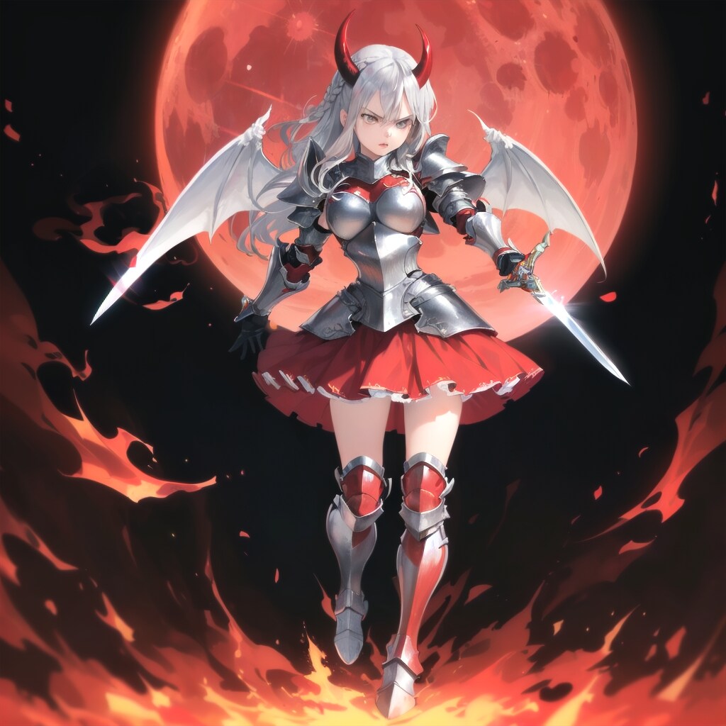 炎の剣で敵を断ち切る悪魔騎士の女の子
