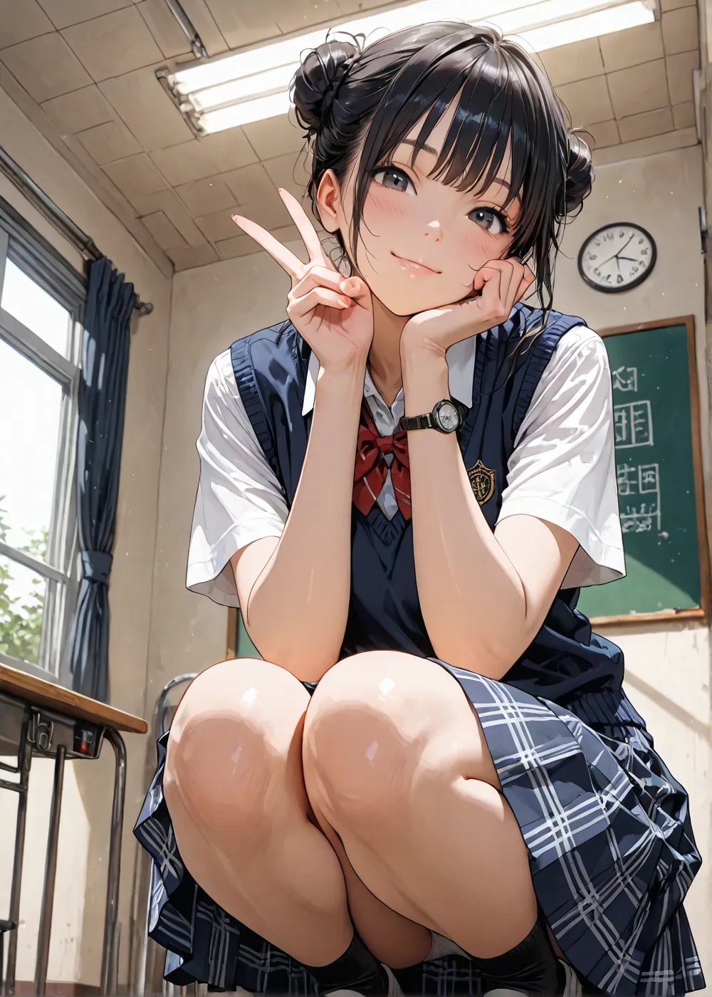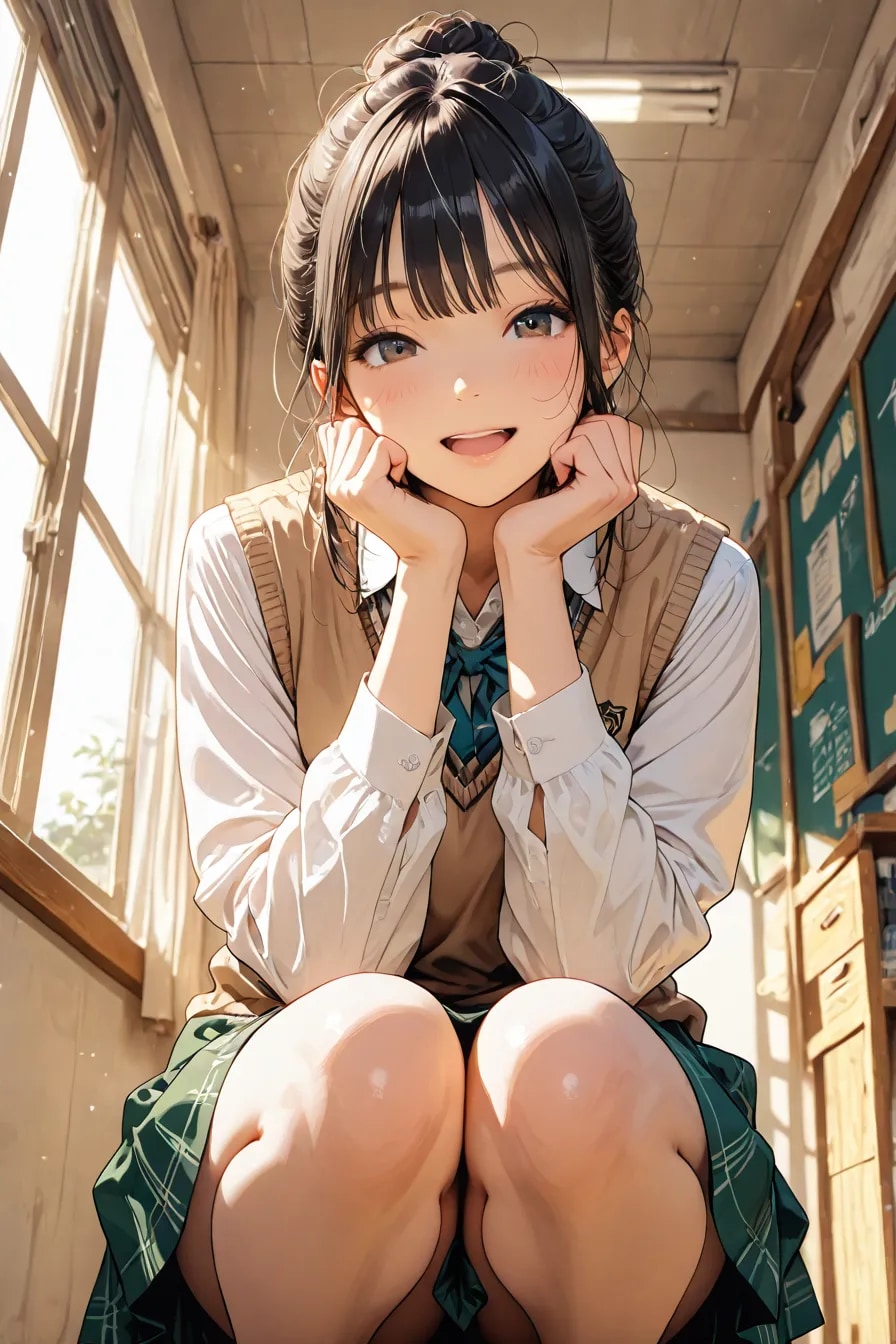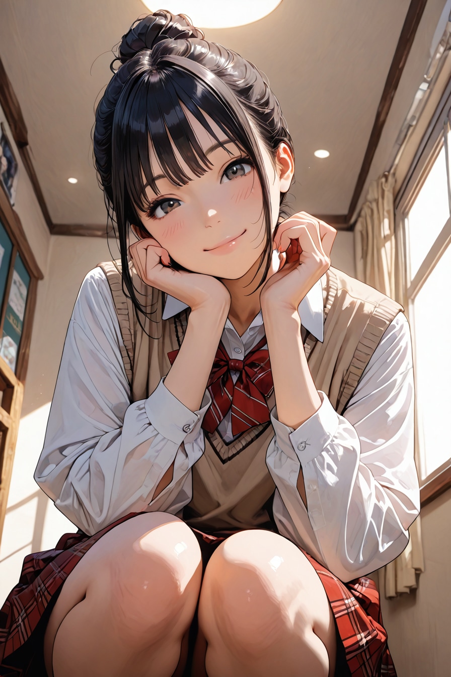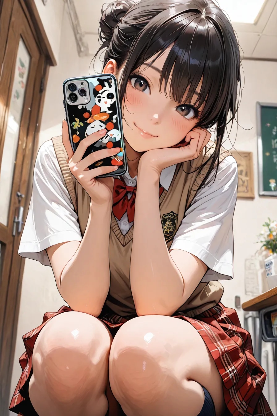 ここ二、三日でお団子ヘアにシャツとベスト,チェックスカートが最高なのでは無いか?という真理に近づいた、、、。