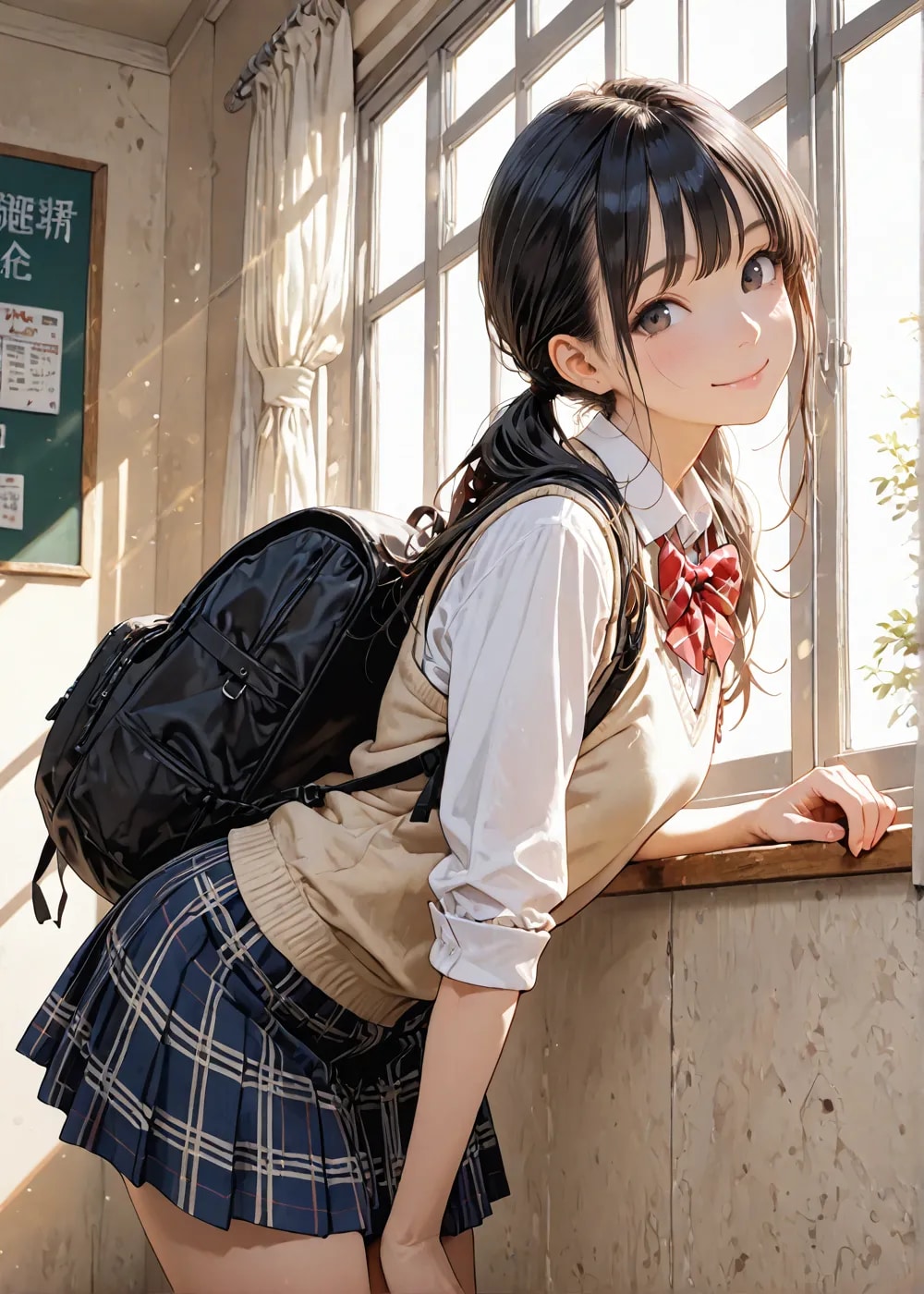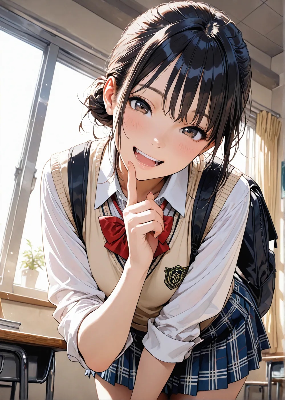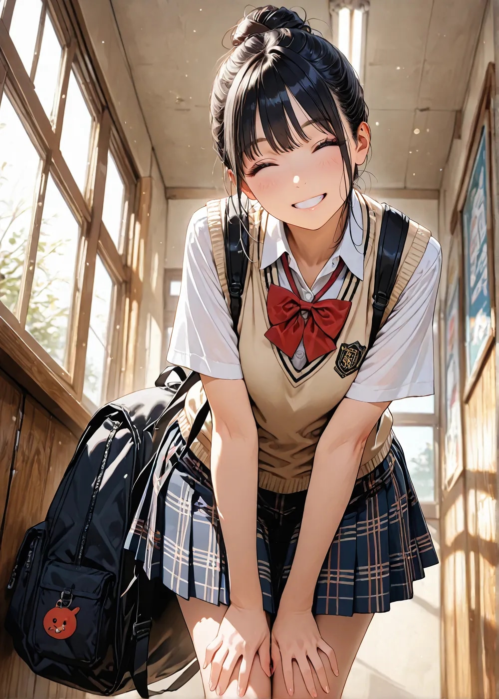 ここ二、三日でお団子ヘアにシャツとベスト,チェックスカートが最高なのでは無いか?という真理に近づいた、、、。