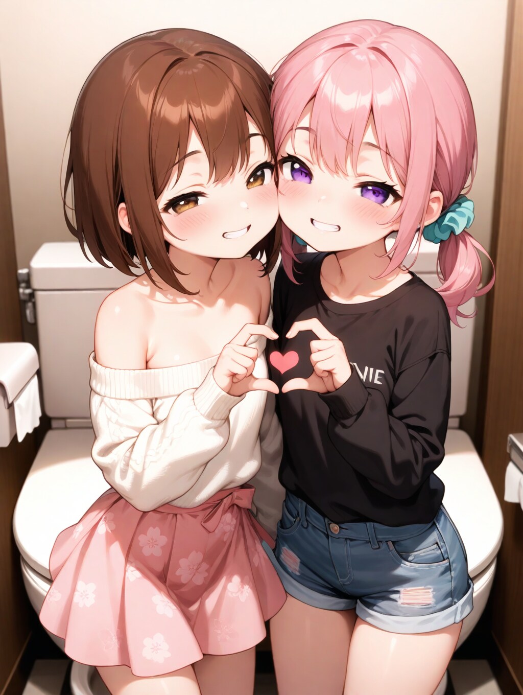 ゆりなちゃん×ピンクおさげちゃん×トイレ