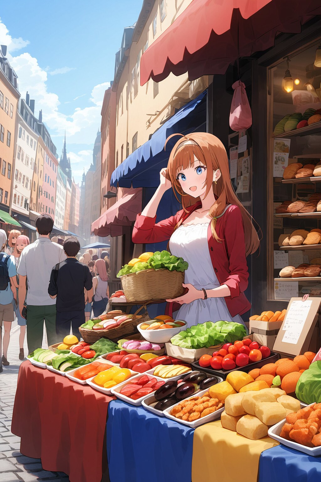八月某、あの頃の景色を跨いだ ストックホルムの露天商、キルナ、ガムラスタンは石畳。
