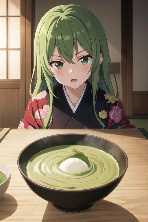 抹茶を見て嬉しくなりたいと思う女の子。