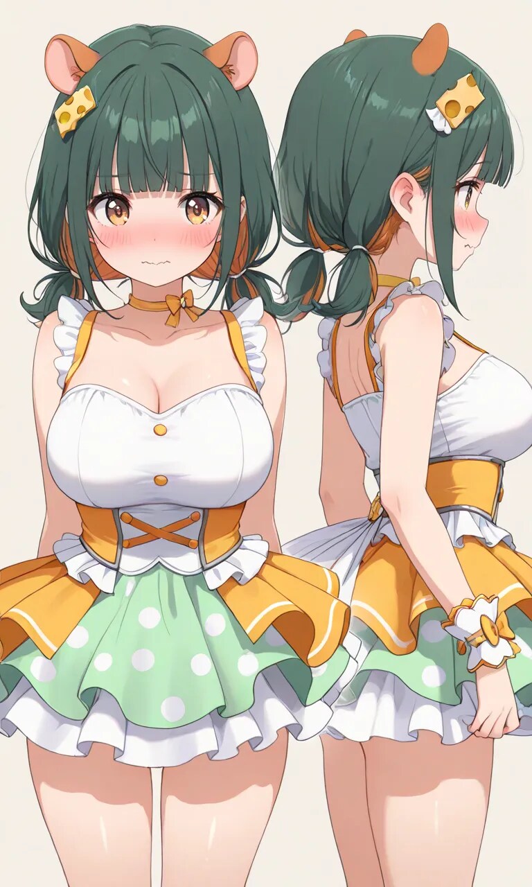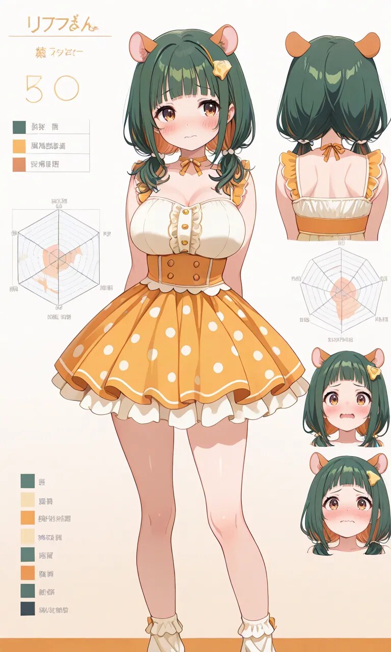 ・基本衣装はアイドルコスチュームでスカート等が水玉模様
