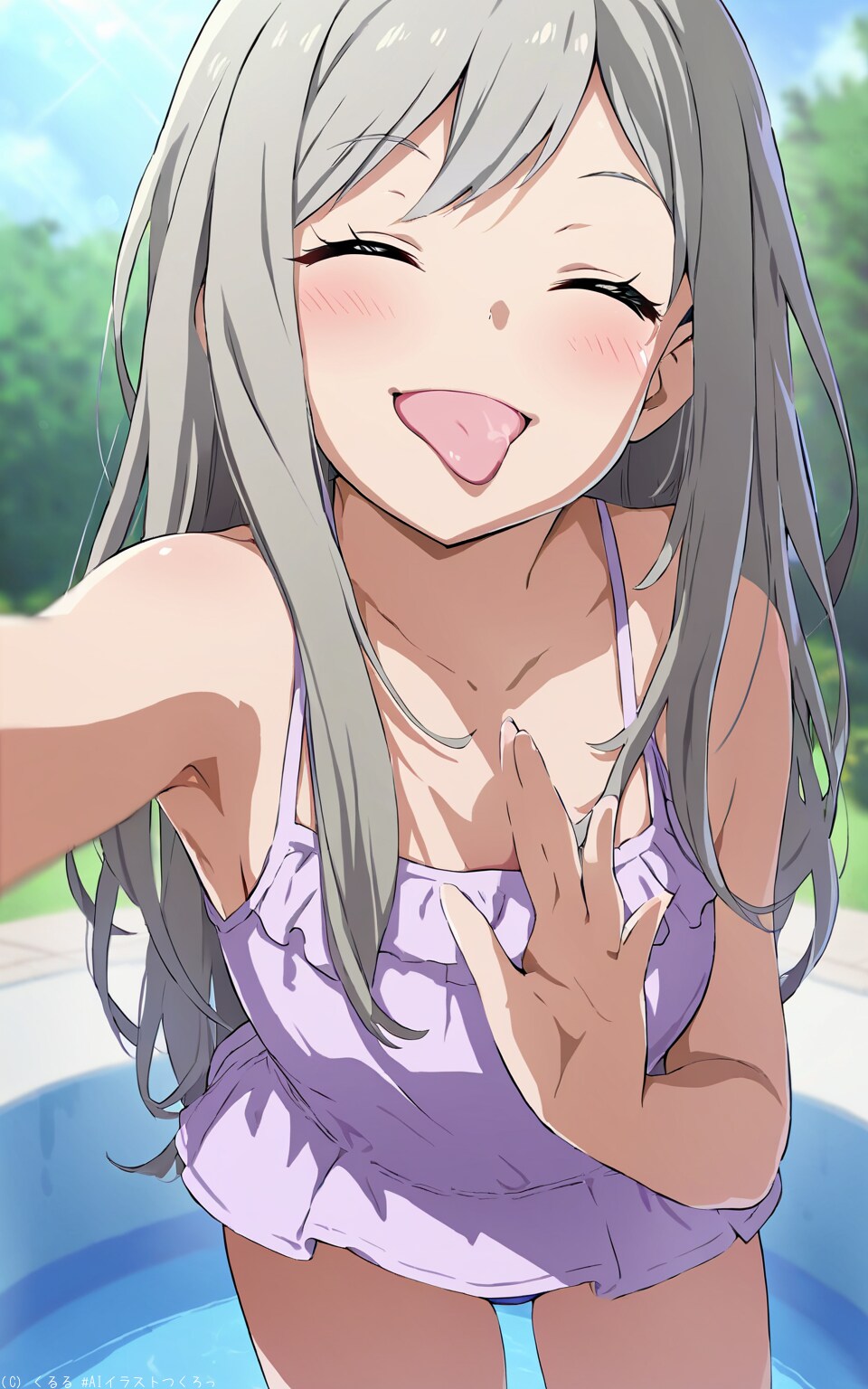 途中カンマで区切らないと失敗確率増えたので区切ってます。舌を出すSticking out tongueワードを入れると下ペロになったり2つ舌が出たりしやすかった気がしたので削除しました。
