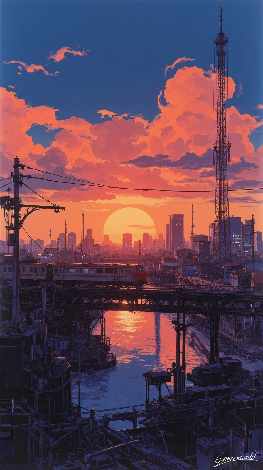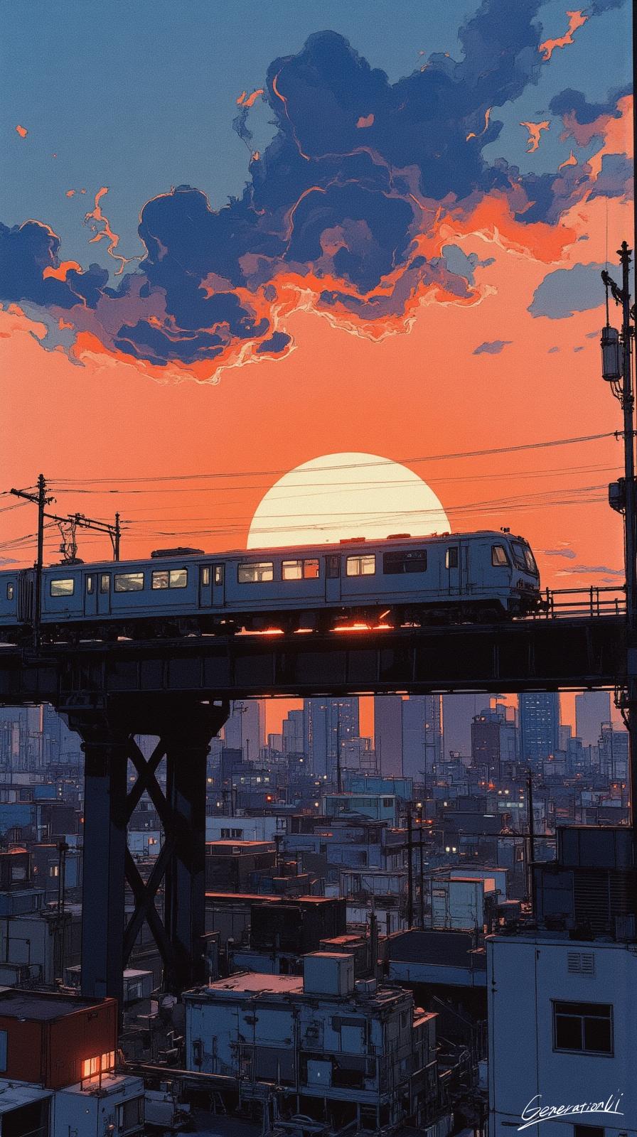 夕陽に染まる高架列車/スマホ壁紙アーカイブ