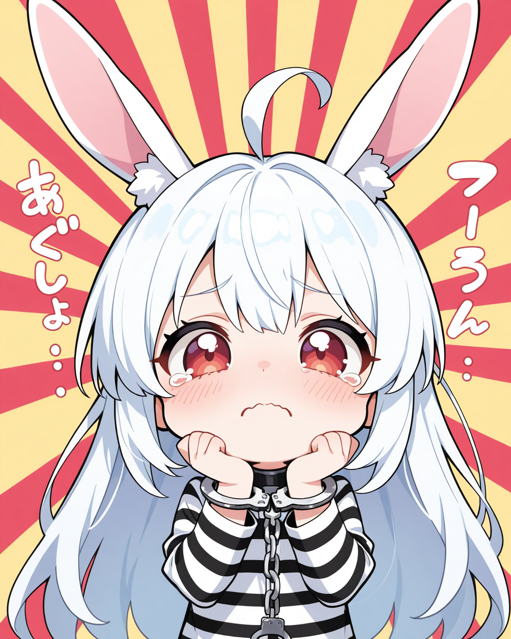 ※うさぎちゃん、泣いておりますが、ウソ泣きです。(このポーズが可愛いと思っています。)