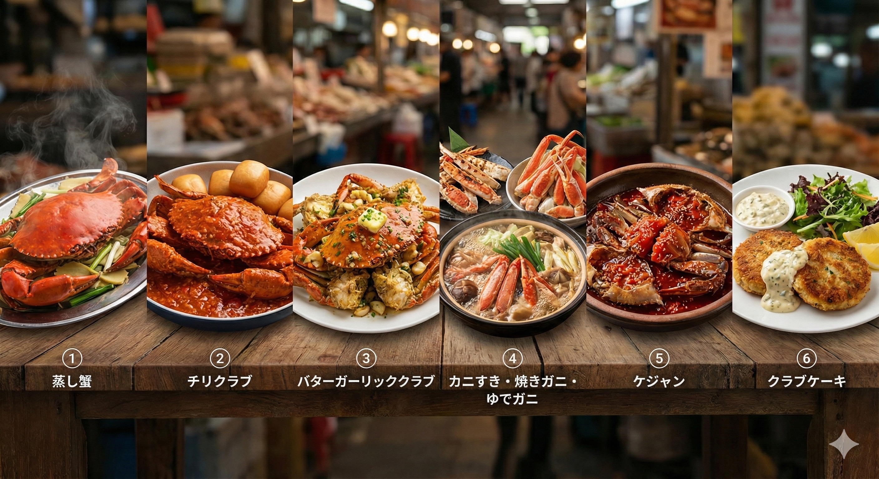 ①🦀 **1位クラス:蒸し蟹(Steamed Crab / 香港・シンガポール)**