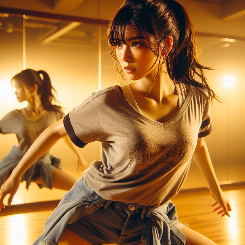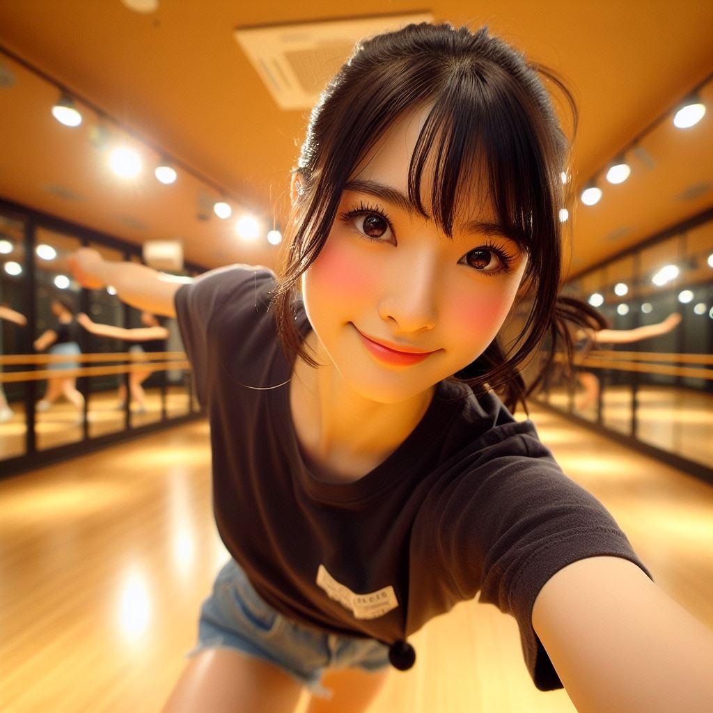 最後の12枚目ですが、単純にレオタードにショートパンツを加えてみた際の生成画像です。これはちょっと別の趣味な感じがしたので、上半身側も取り替えました。