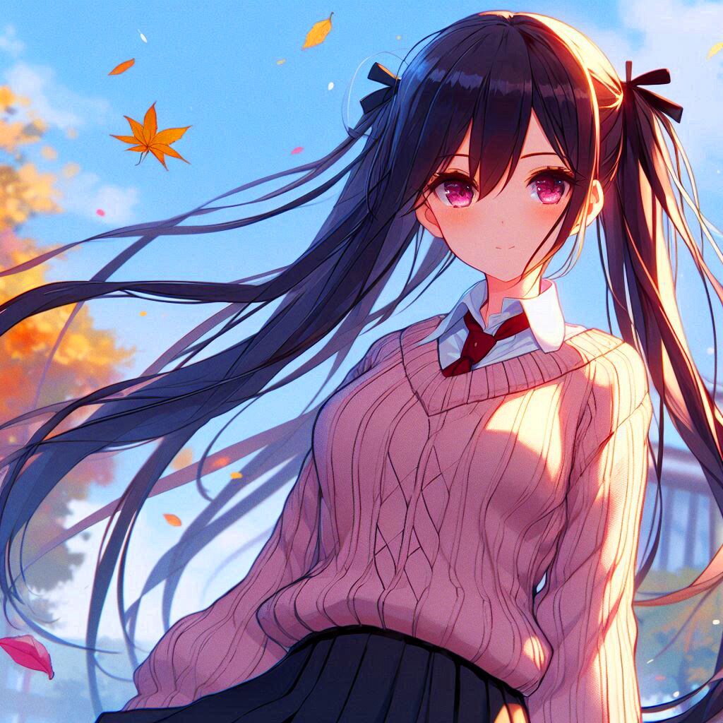 セーター制服な、黒髪ツインテール少女*(2枚)