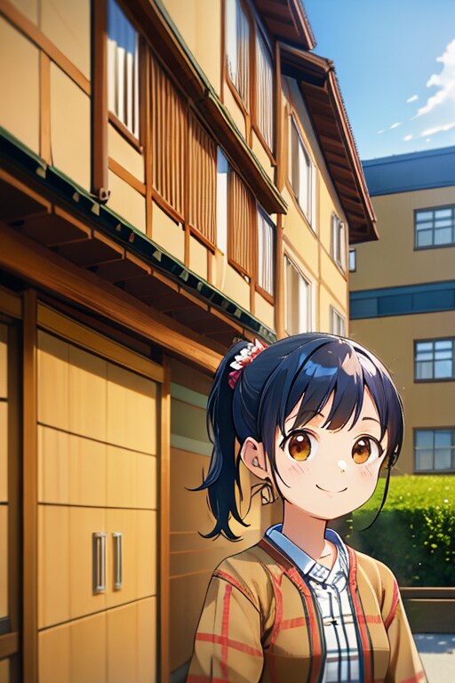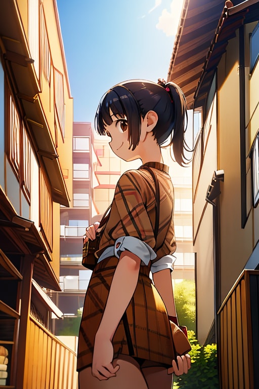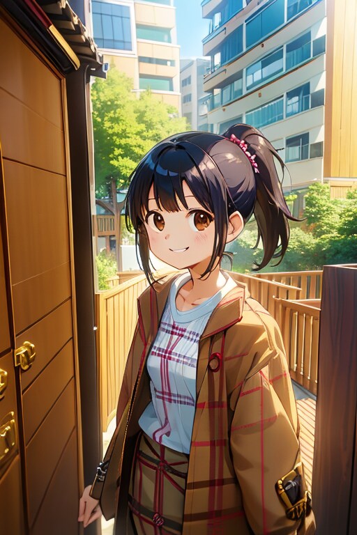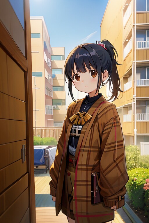 女の子はいつもの黒髪ポニーの茶瞳っ娘(服にバーバリーを指定)