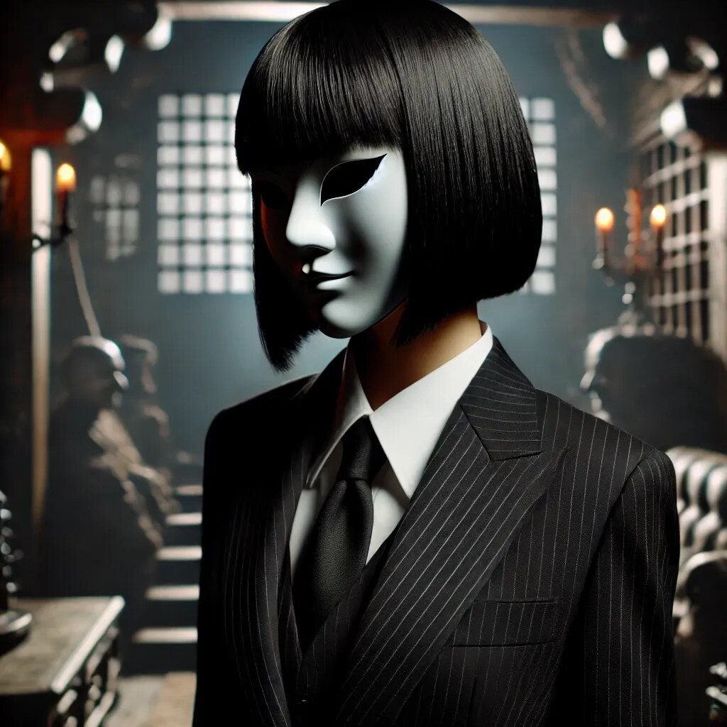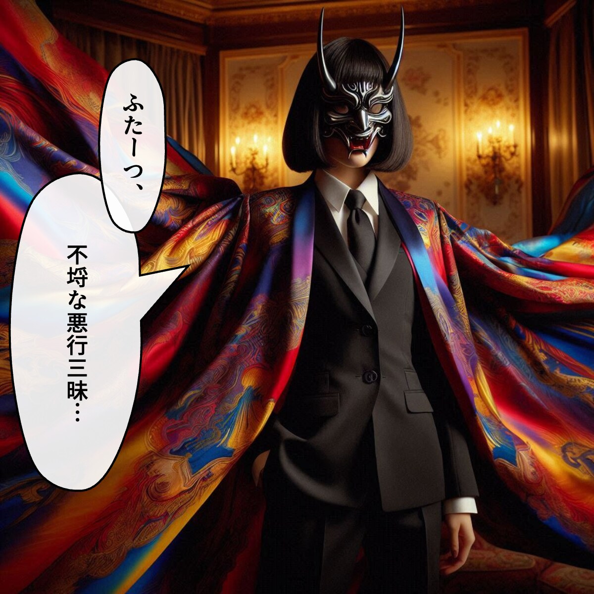 般若のお面はhannya maskで指定しても生成できなかったので、Wikipedia英語版から借りて、