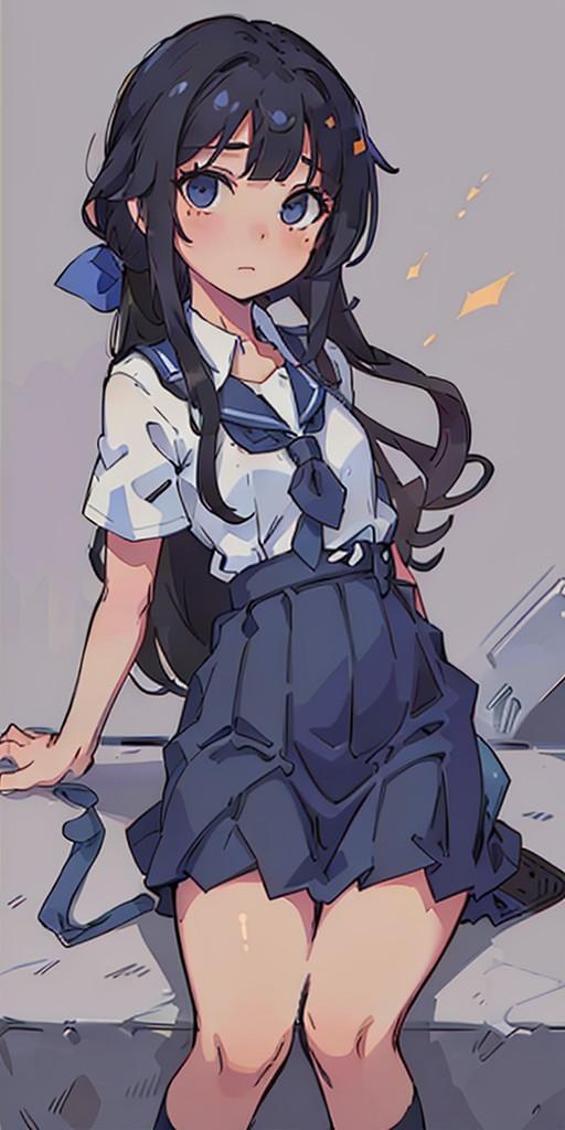 「長髪J〇ちゃん」のセーラー服姿(座り)