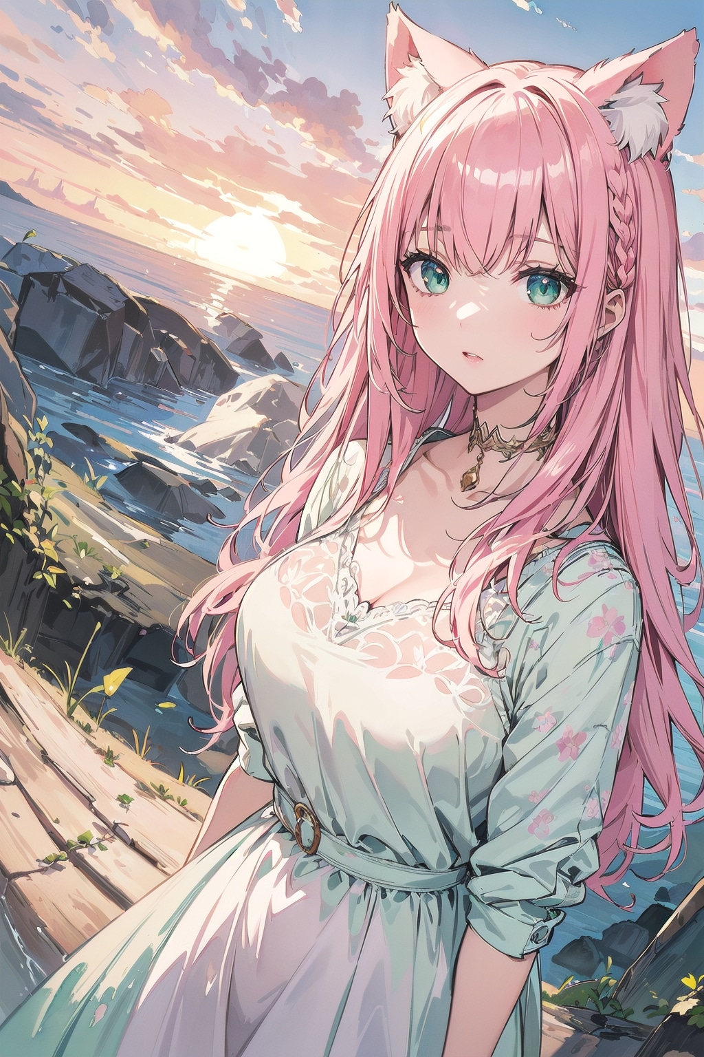 2枚目はi2iでいつものV4Bになったミクちゃん🐱ちなみに、V4Bは「watercolor style」をなかなか認識してくれないので、大抵は水辺の画像になります💦こういう時はi2iが便利ですね😉