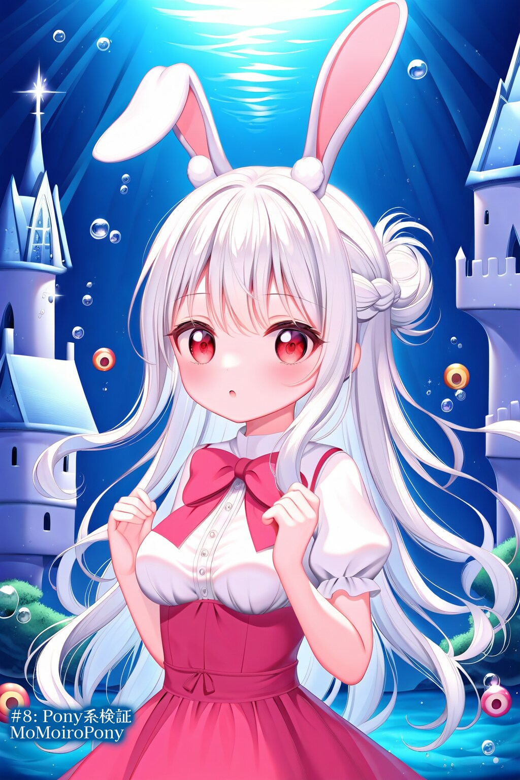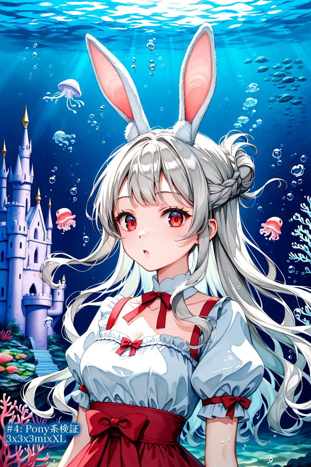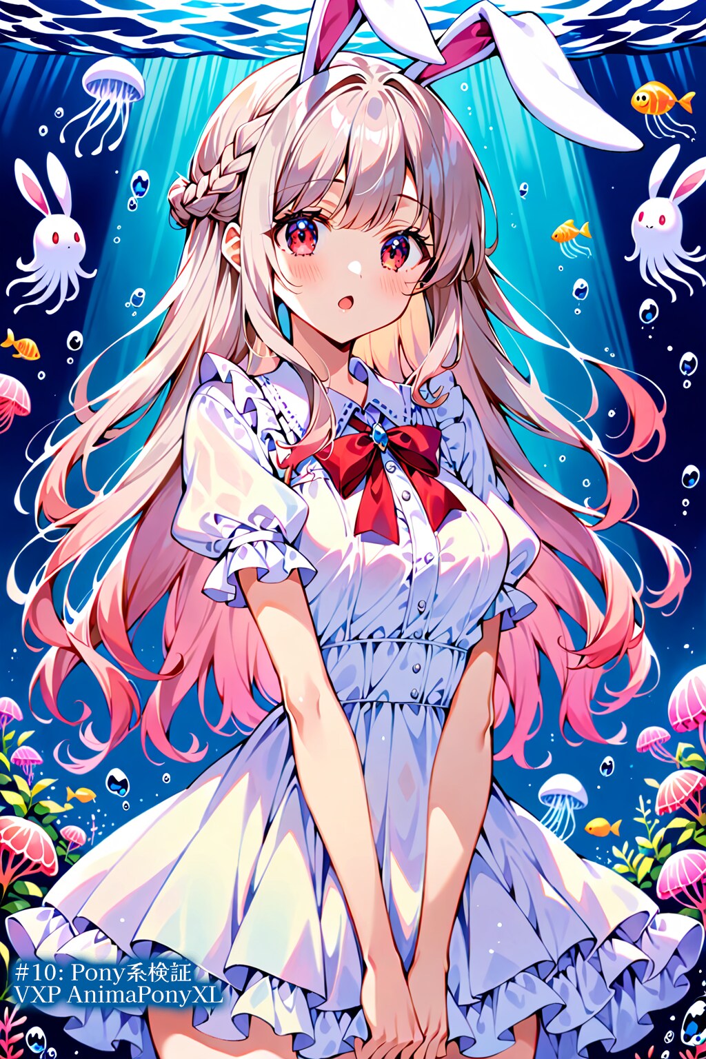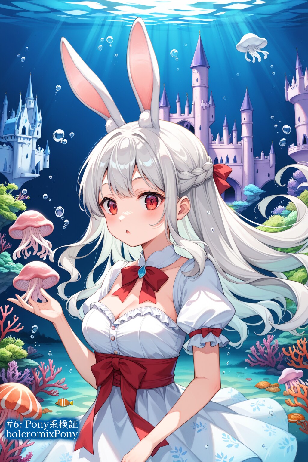 ●#5: 7th Anime XL-Pony A v1: アニメ系ではっきり。左手の指が破綻してないですね。クラゲにかわりウサギさん登場。