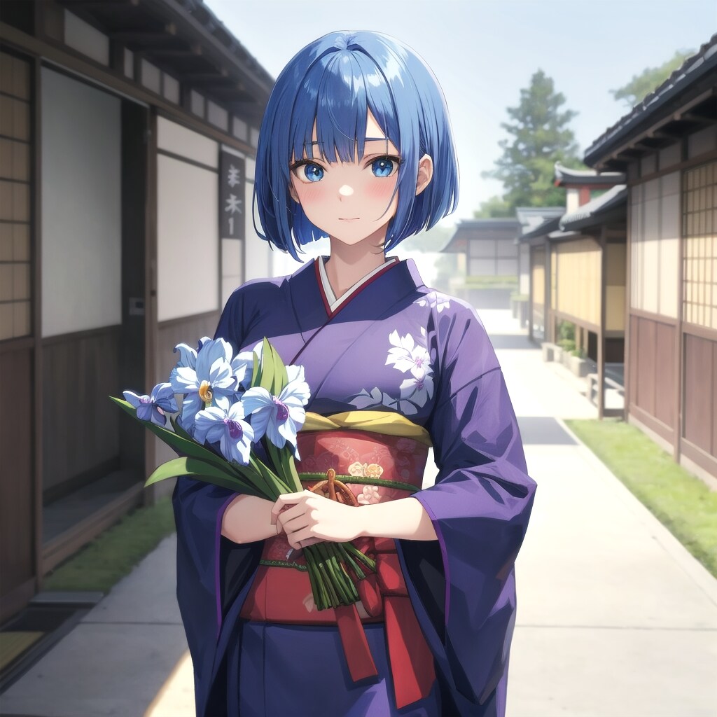 - 日本アイリスの花束: 文化祭での茶道部の演出に合わせ、伝統的な紫色の着物を着て、日本アイリスの花束を展示します。※日本アイリス=アヤメ
