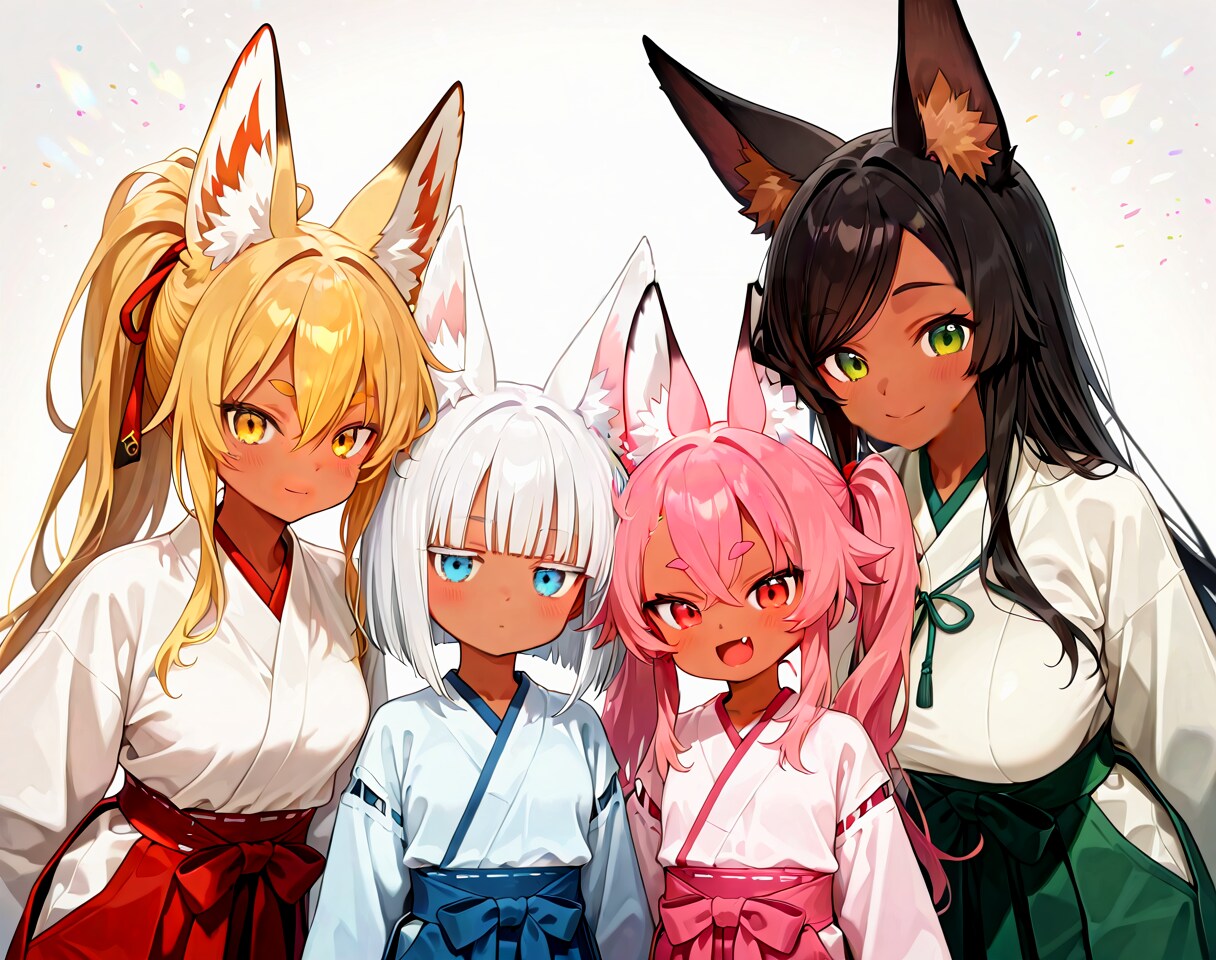 こうして家族になった4人の狐娘はいつまでも仲良く暮らしましたとさ。