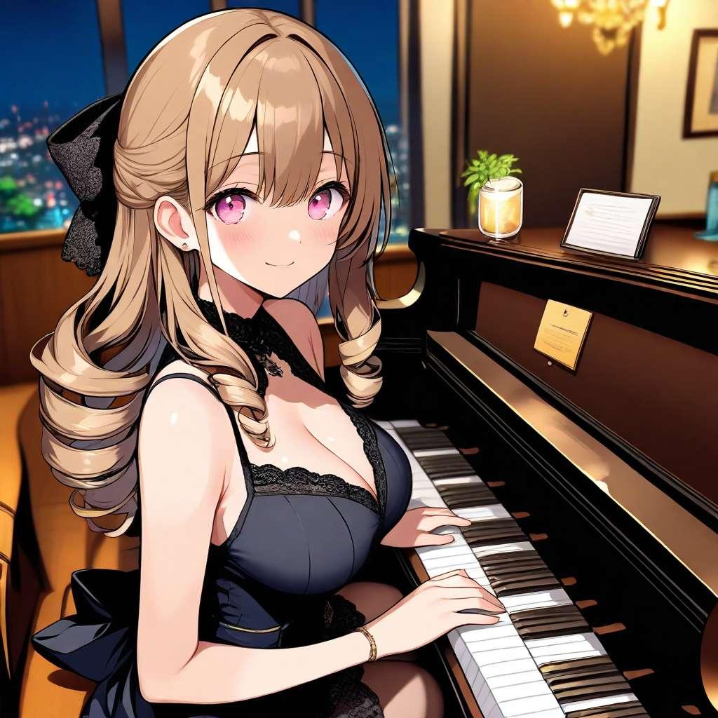 高級ホテルのラウンジで働くピアニストのイメージ、セクシーさもあっていいですね