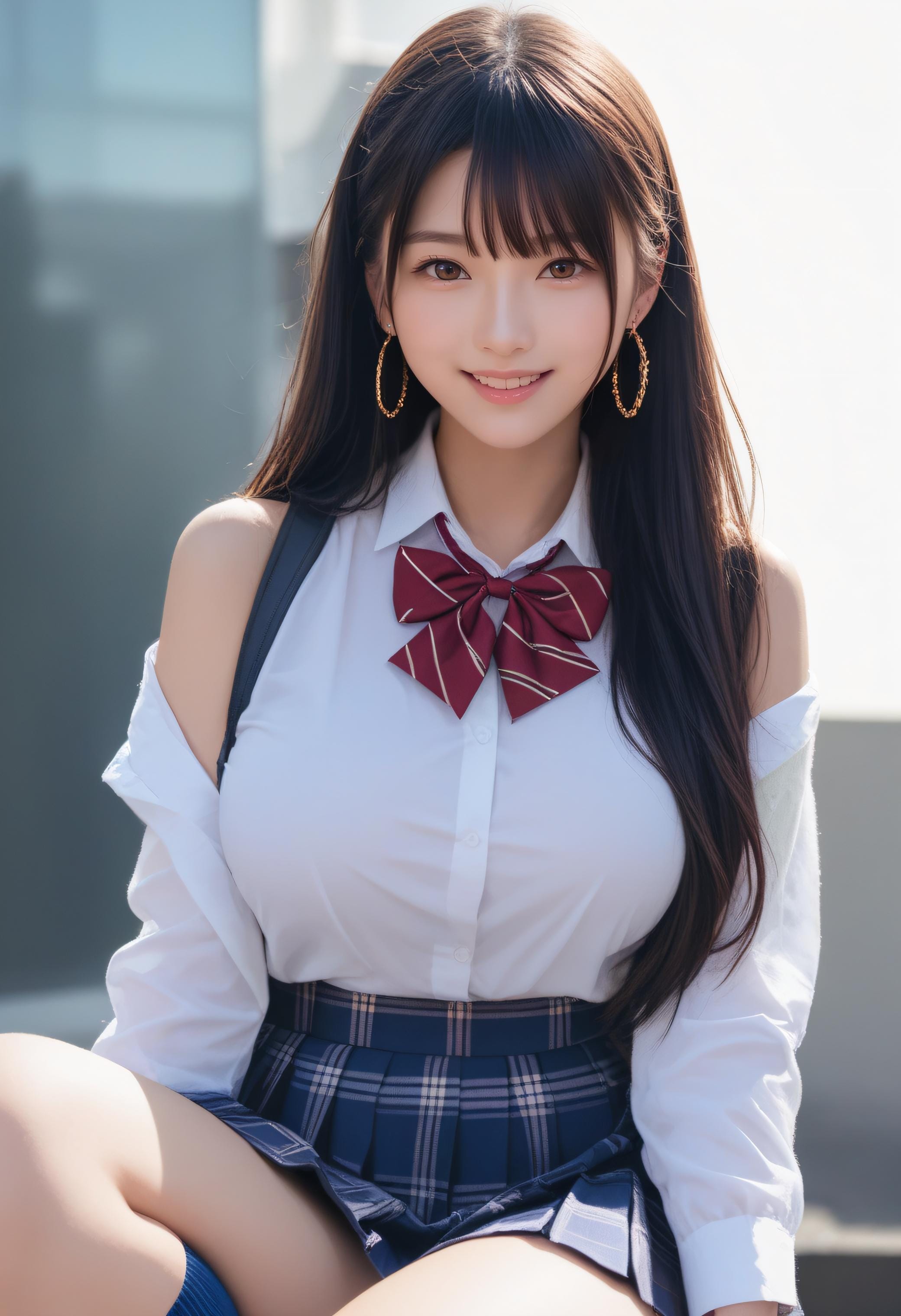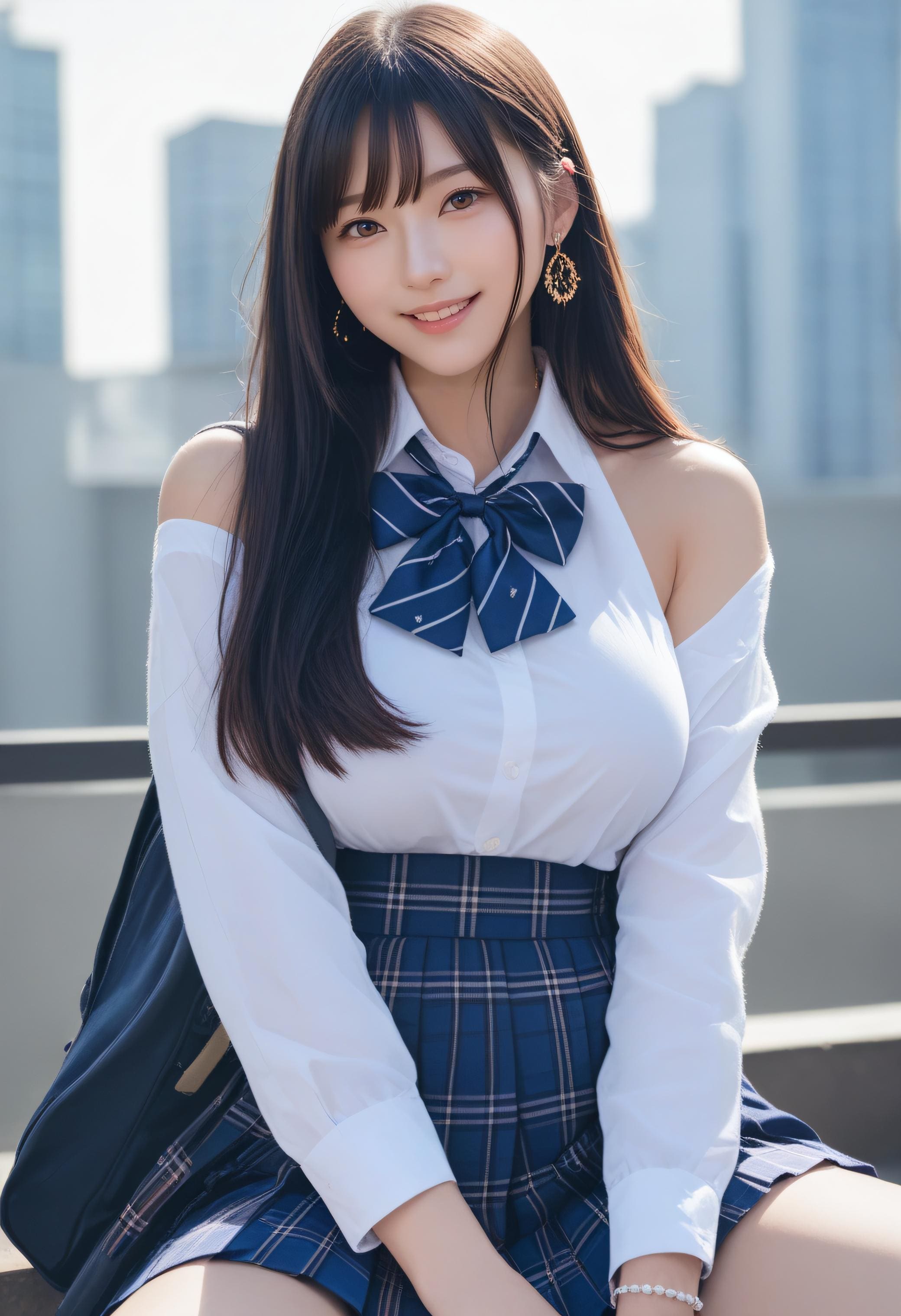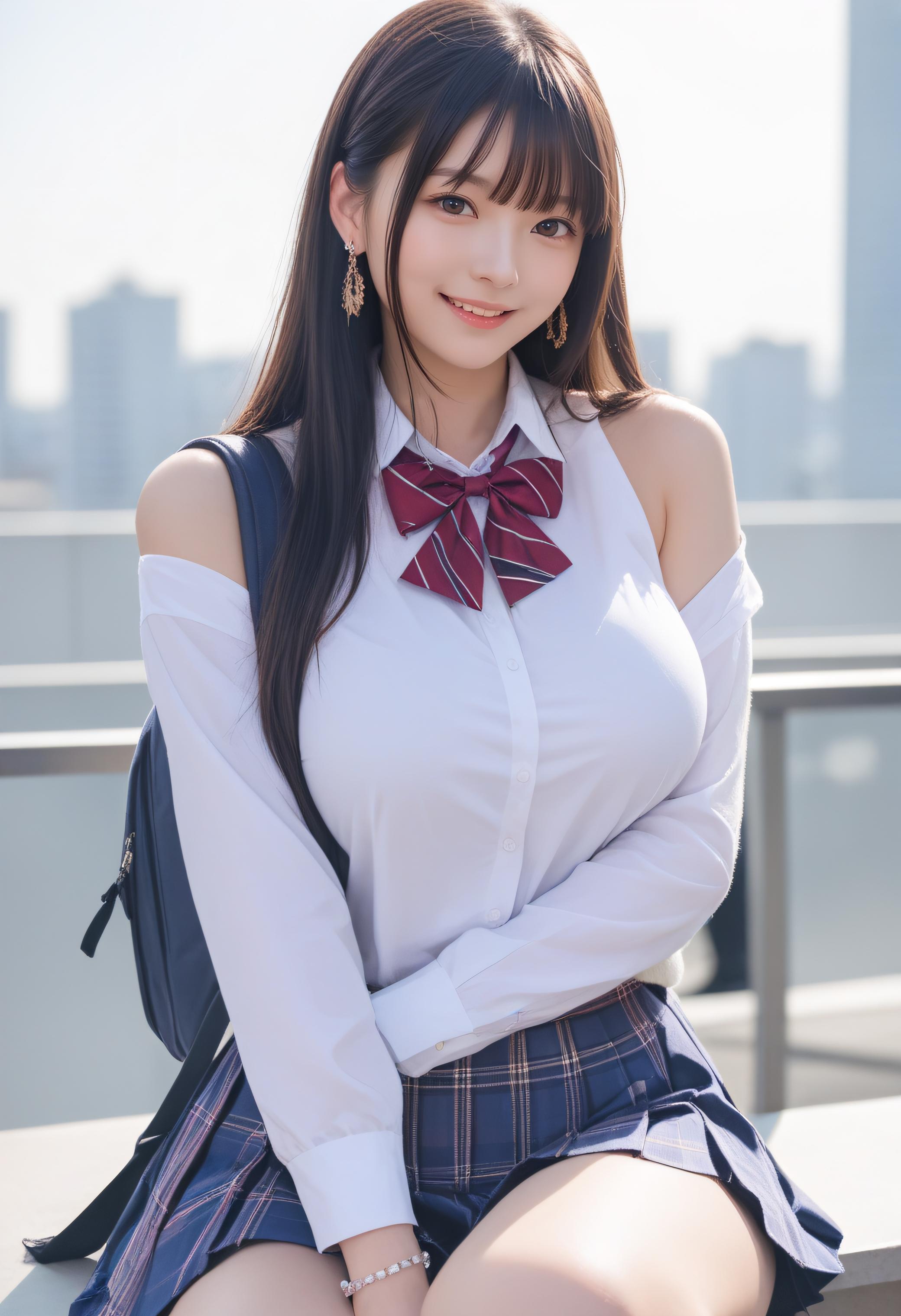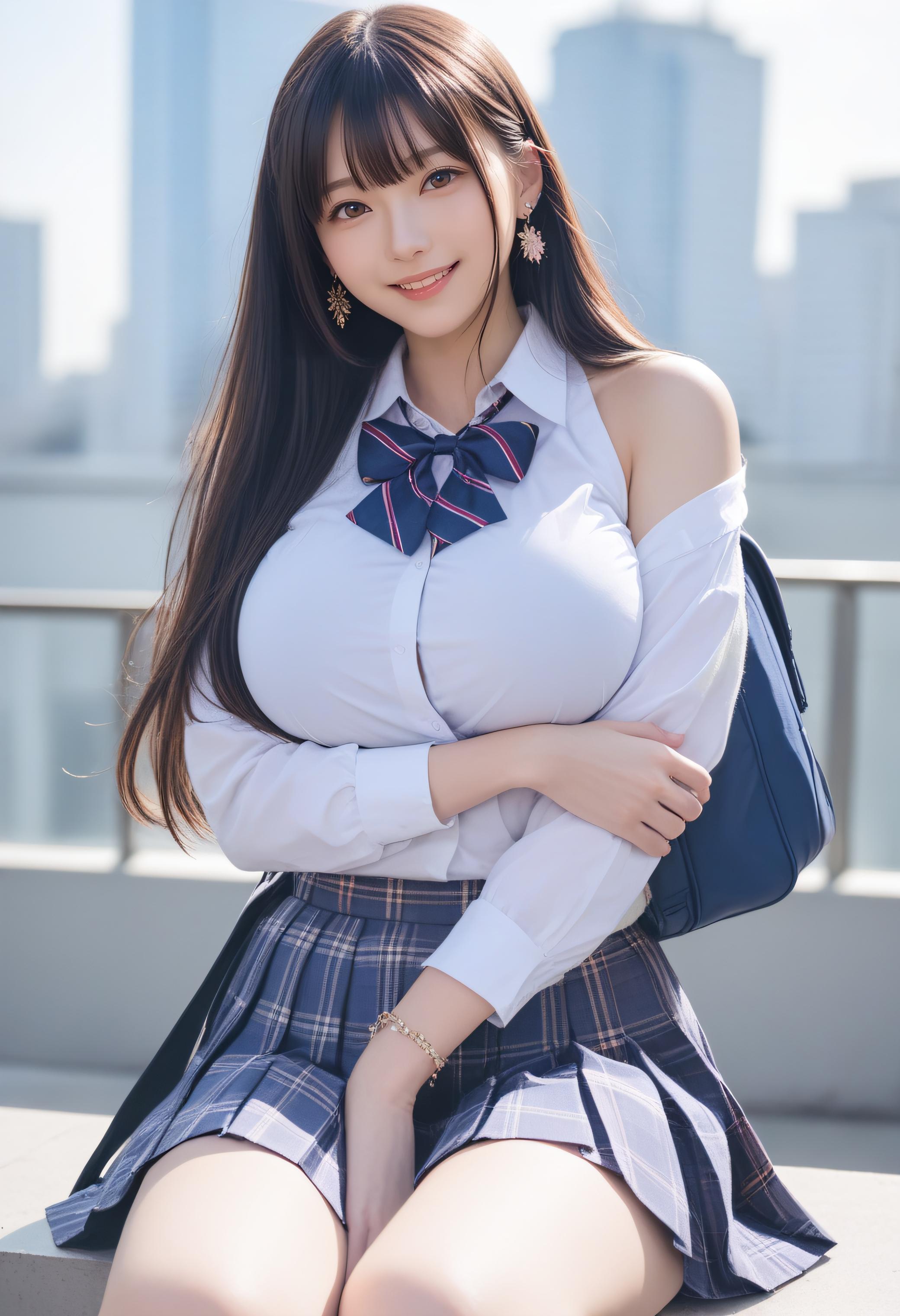 断れない彼女は、肩だしの制服が見たいという先輩にいわれるままにはずかしそうにしてる巨乳美女