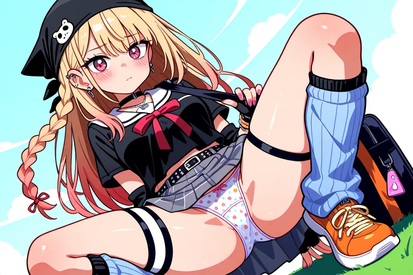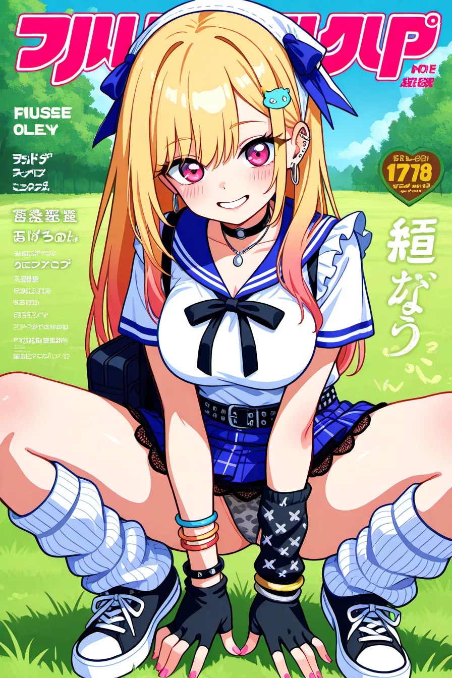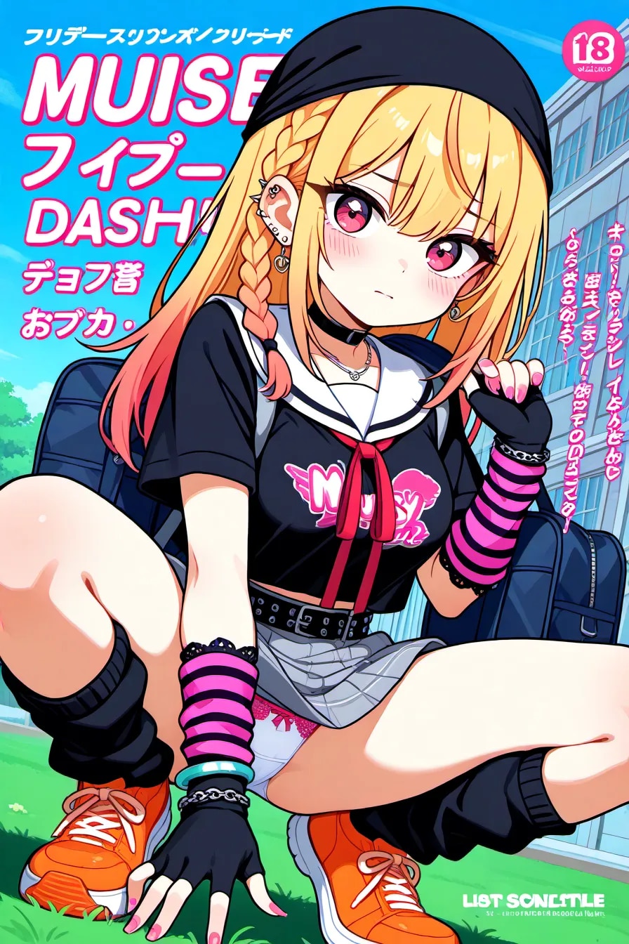 jacket partially removed, heart in eye, burnt clothes, holding fishing rod, kanji, doujin cover, pentagram, tape gag, adjusting headwear, red socks, friends, cloud print, coke-bottle glasses, oral invitation, competition school swimsuit, barbell piercing, gradient legwear, prisoner, blood on breasts, wind chime, carrying over shoulder, tape measure, flaming weapon