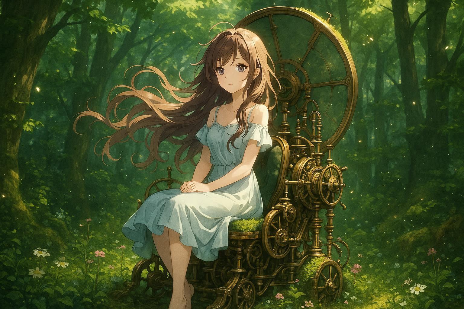 少女は困惑しながらも、指先で機械の冷たい金属に触れる。