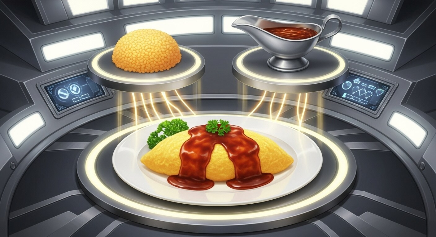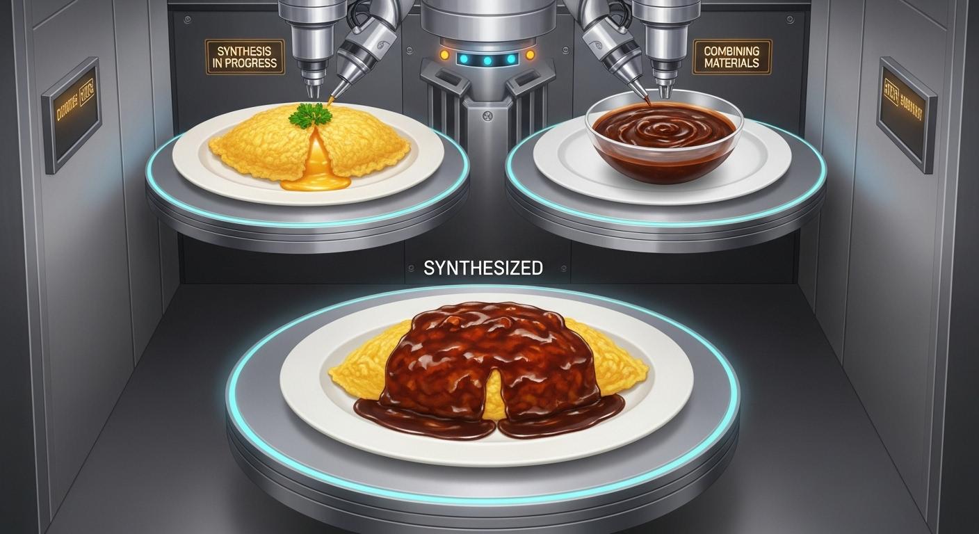 オムライスとデミグラスソースで合成