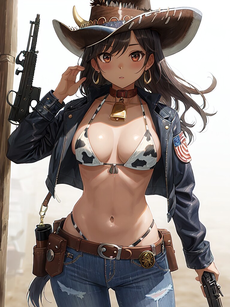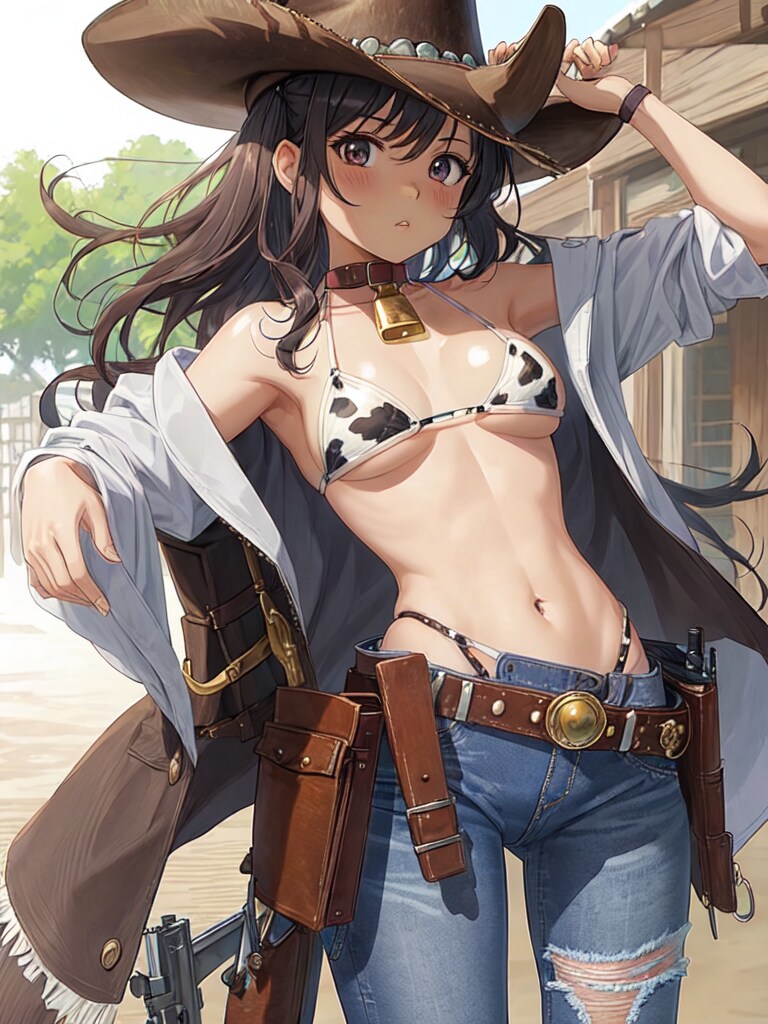 牧場経営兼賞金稼ぎ。早撃ちは0.2秒、投げ縄も得意。この格好で荒野を歩くと色々大変そう。