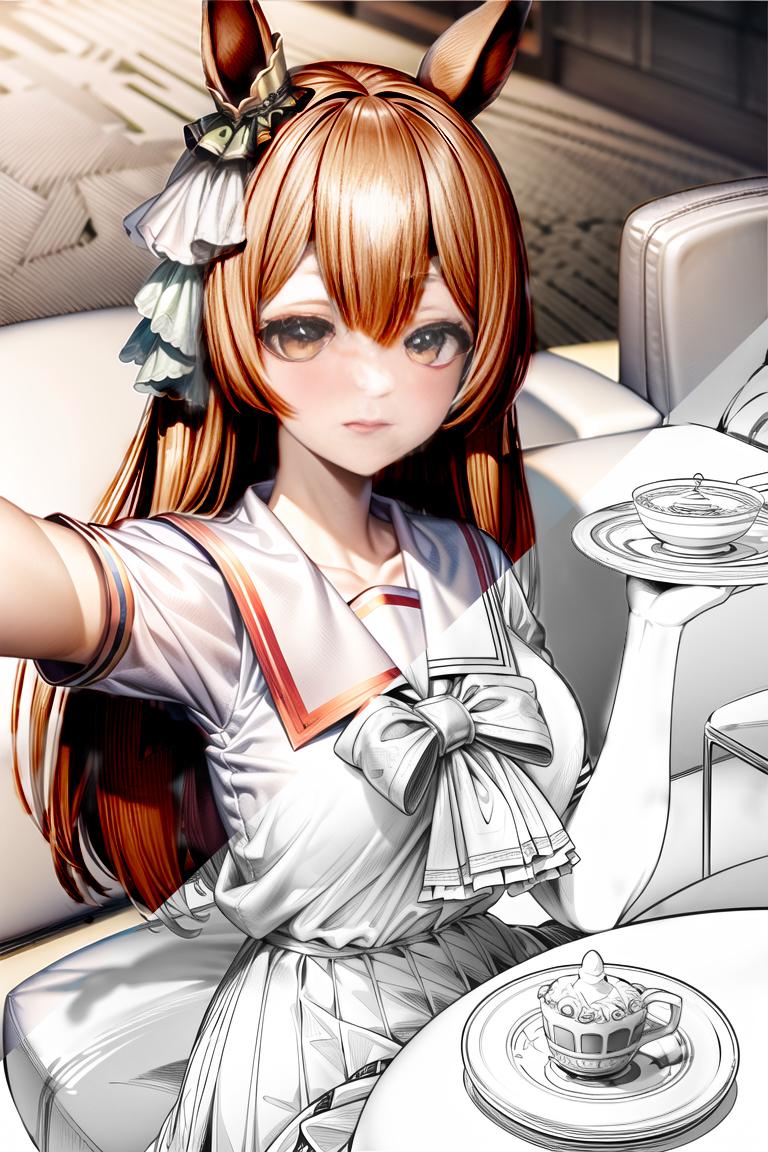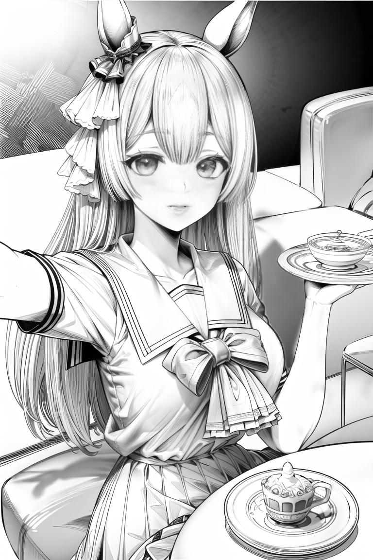 サトノダイヤモンドのお茶自撮り(線画の着色)