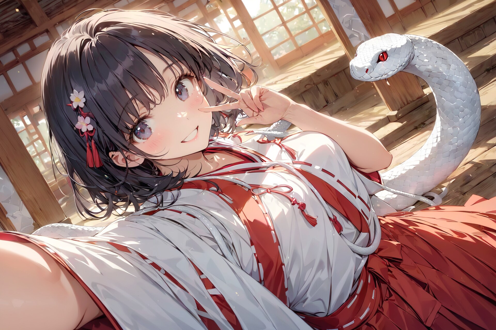 「白蛇様、一緒に写真撮るよ~(鷲掴み)」