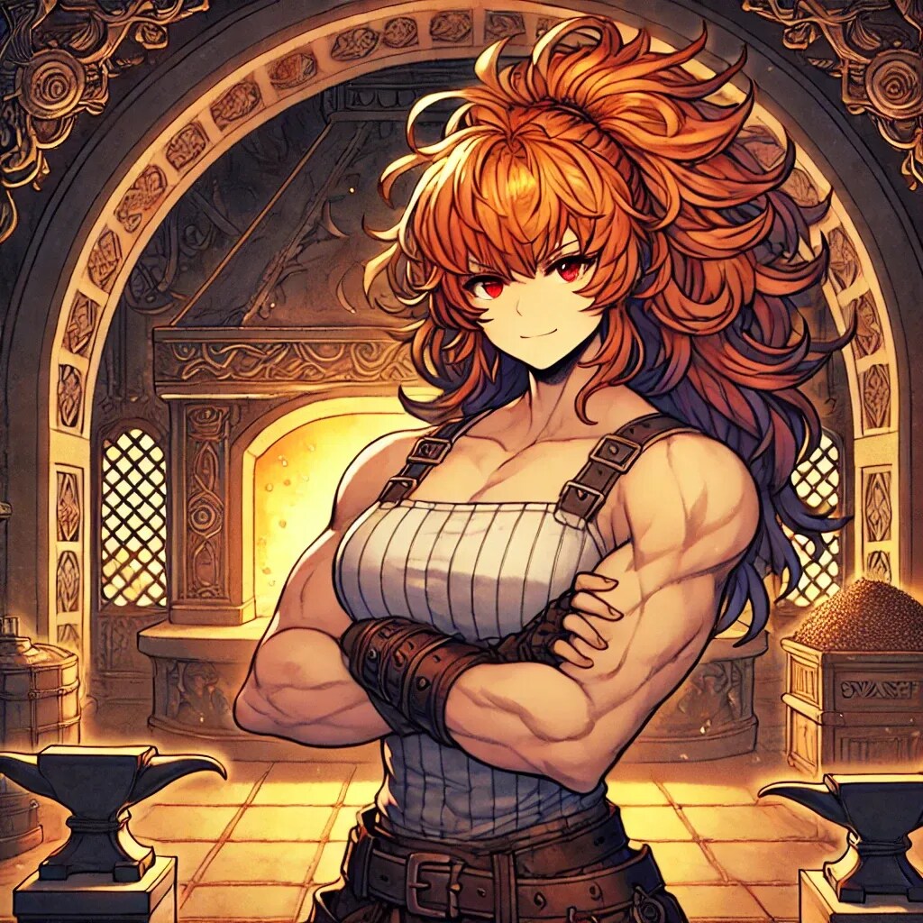 急に、図太い女の声。工房の入口で腕組みする、大柄な赤毛女。