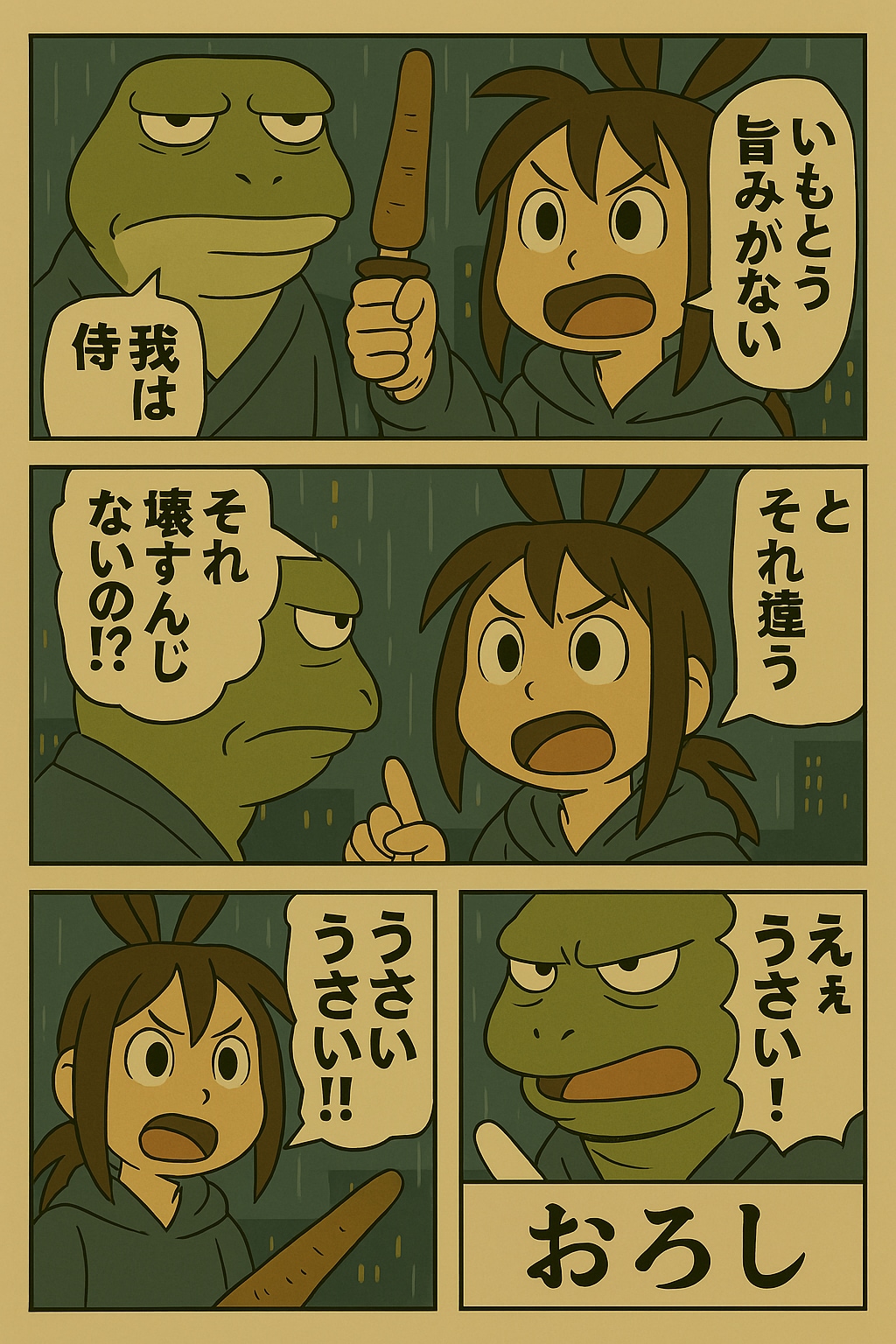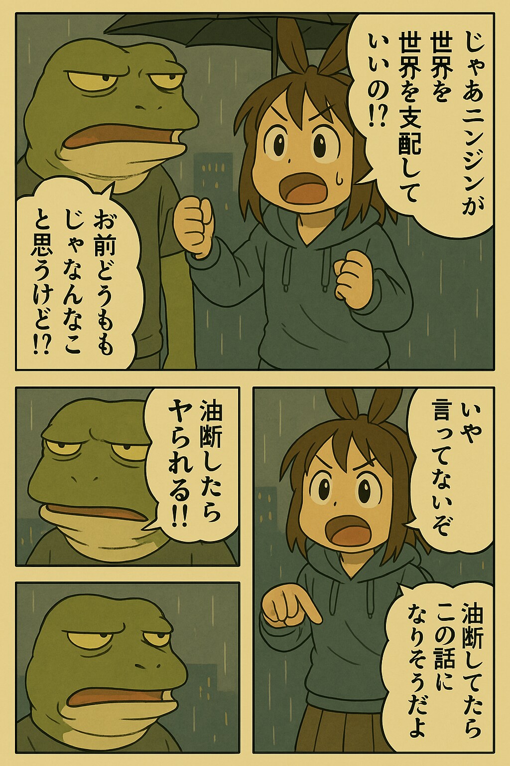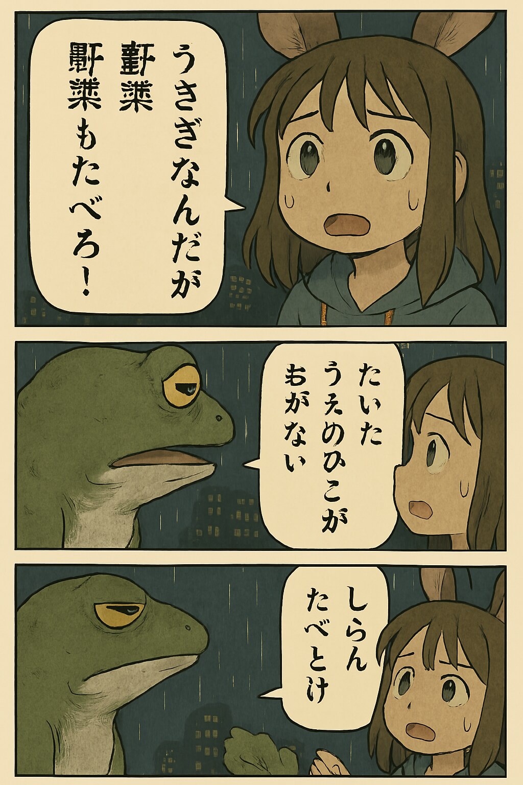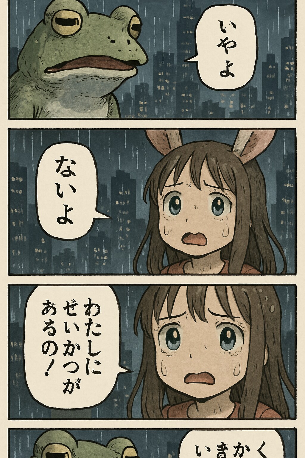 雨の中、うさ耳をくにへかえそうとしたら