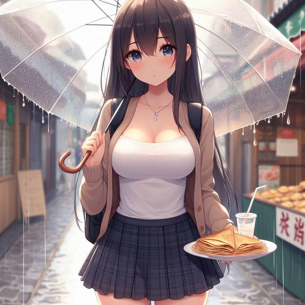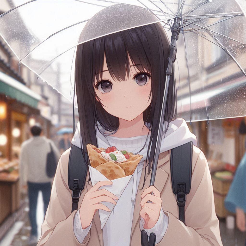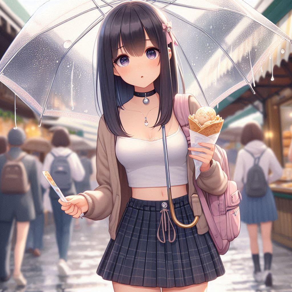 ビニール傘を差しながらも市場を散策しながら食べ歩く