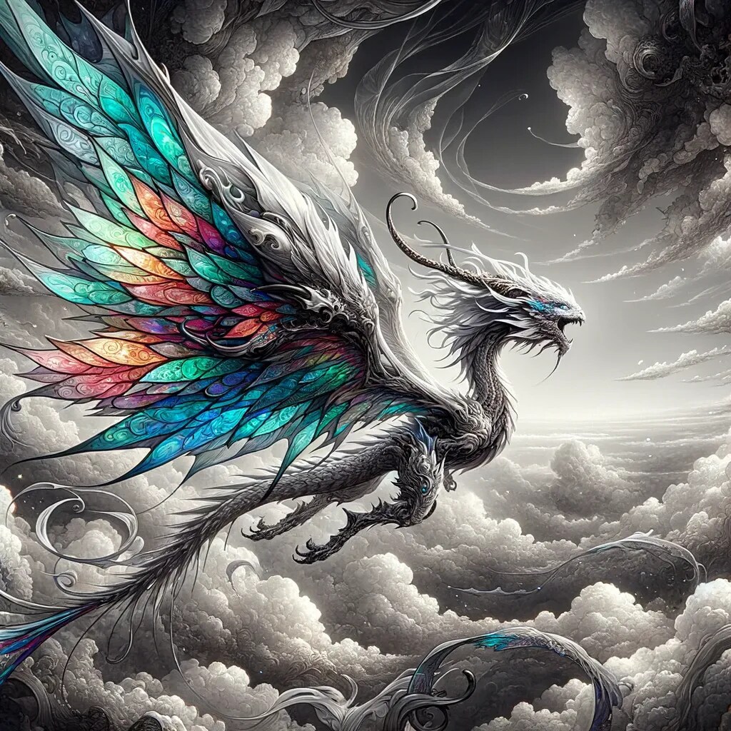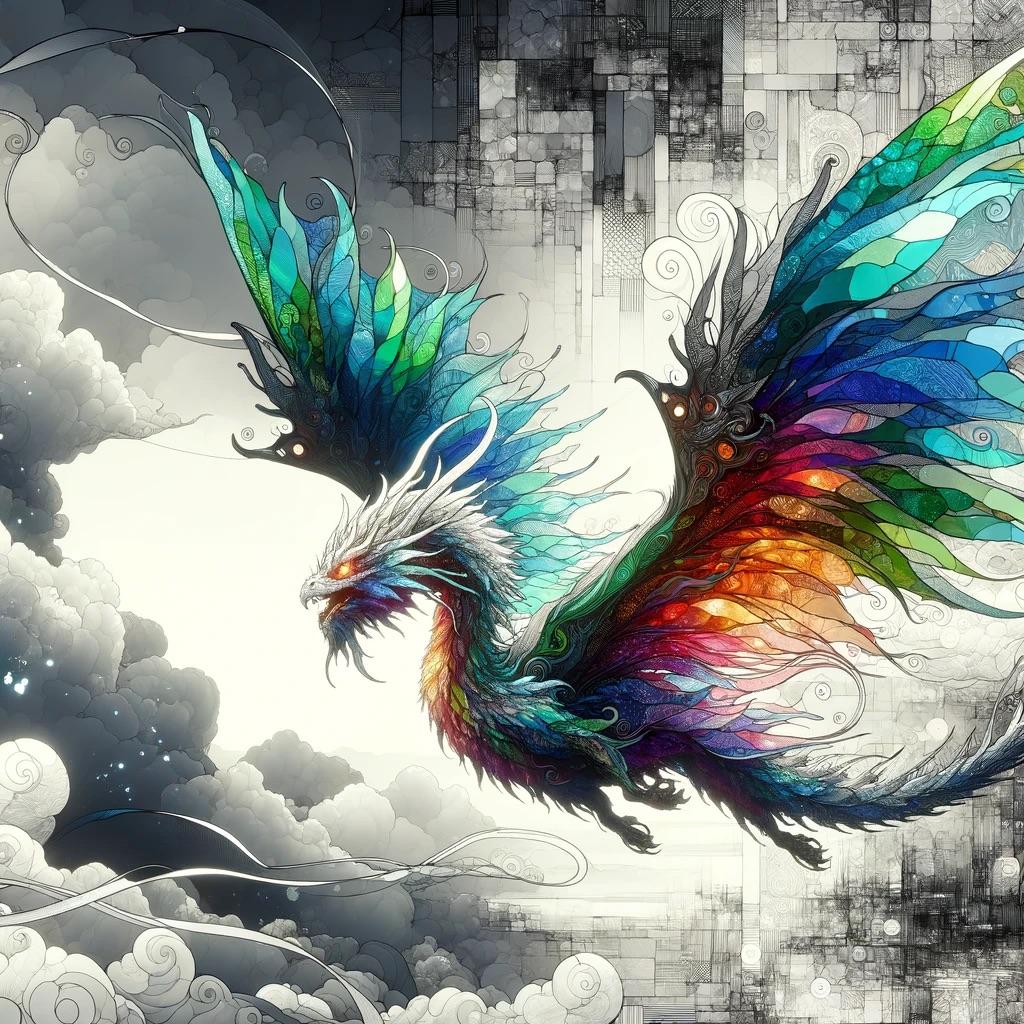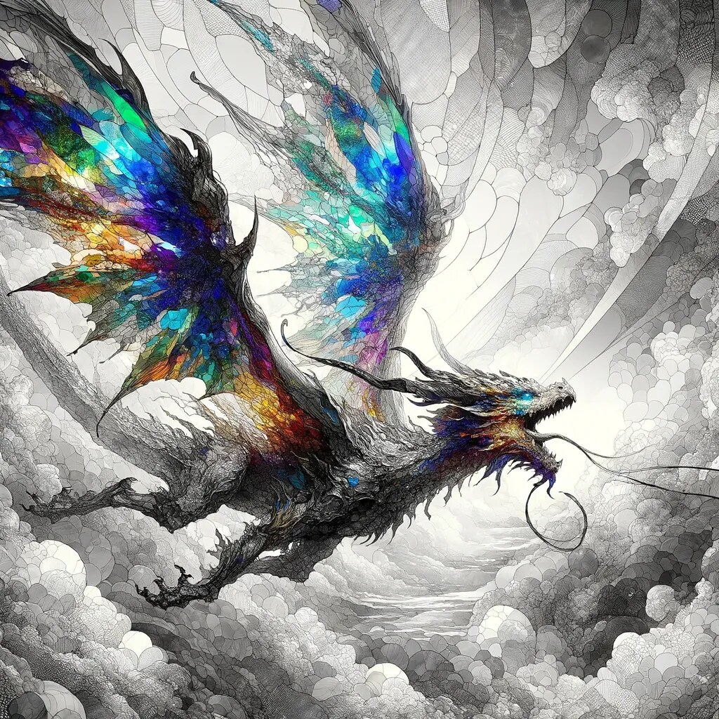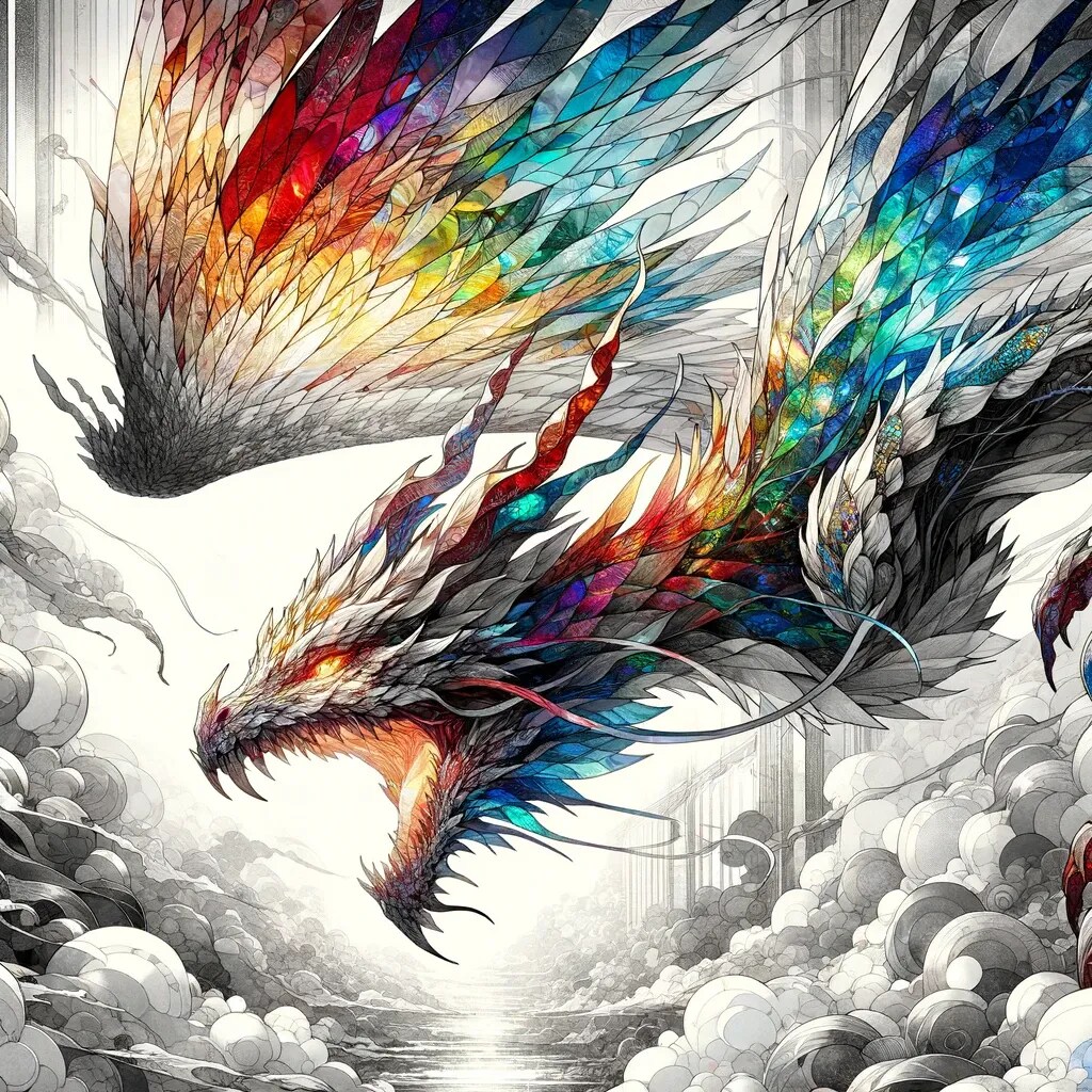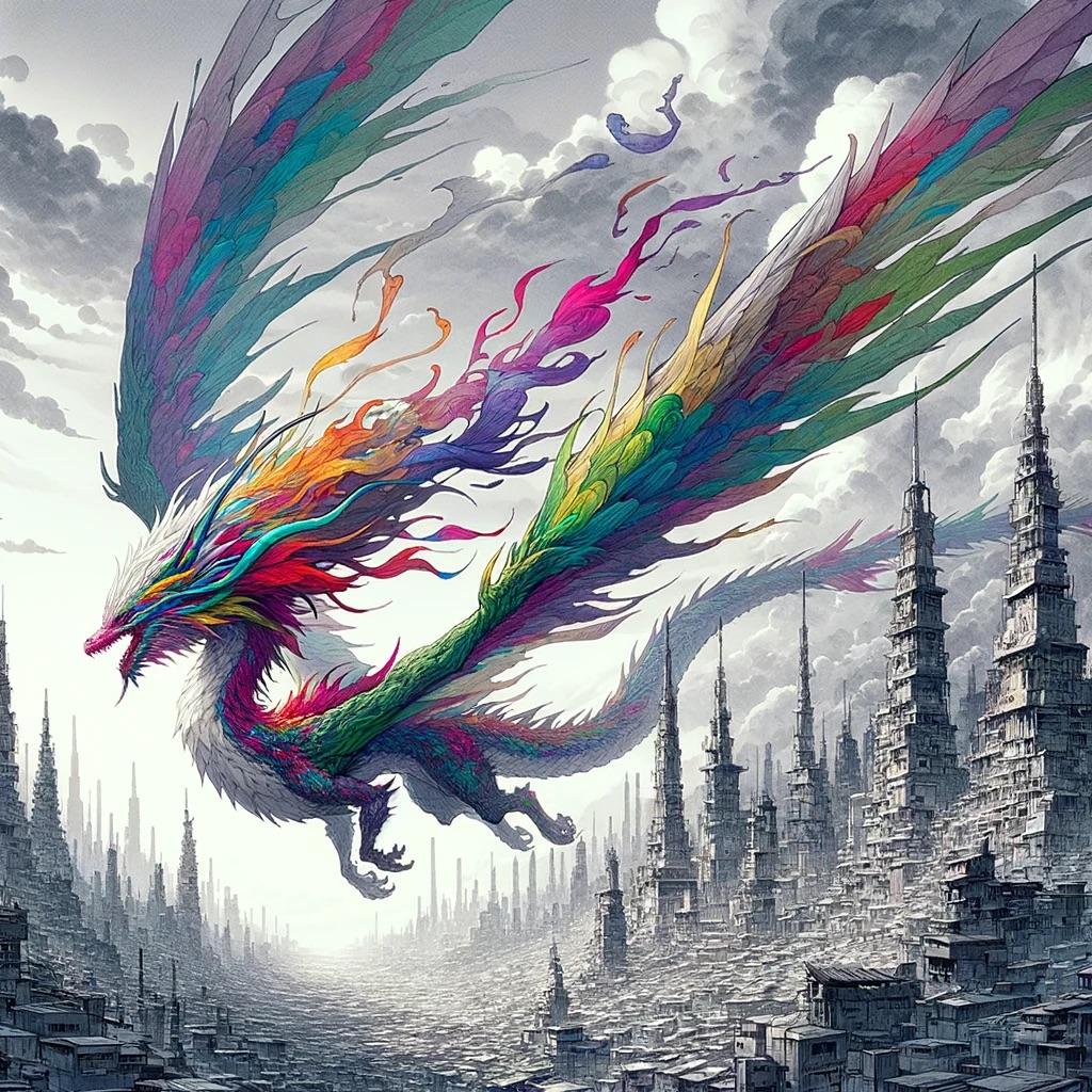 極彩色のドラゴンが浮遊する