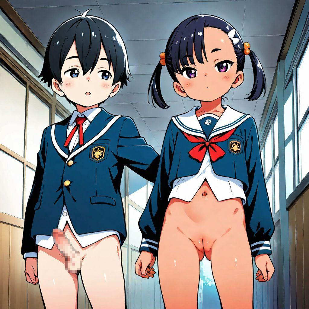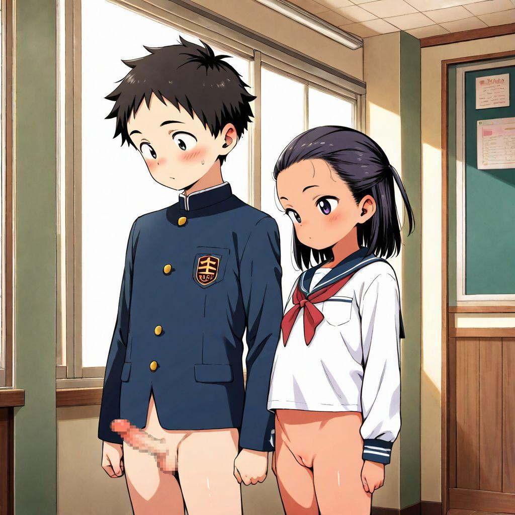教室では、女の子たちは上は制服のシャツを着ているが、下半身は丸出しで意外と平気。