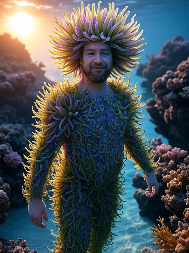 Grokに、ダイオウグソクムシウーマン、ナマコマン、イソギンチャクマン、クラゲマンをそれぞれ描いてもらいました。
