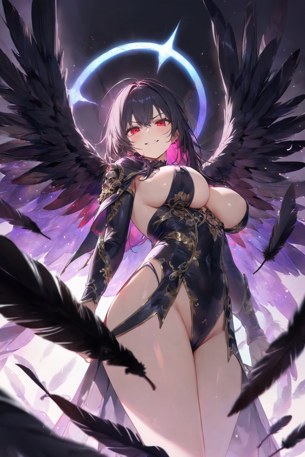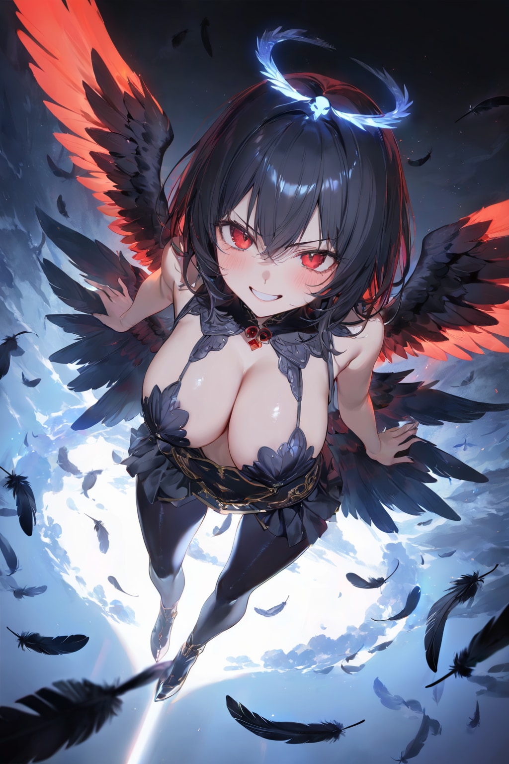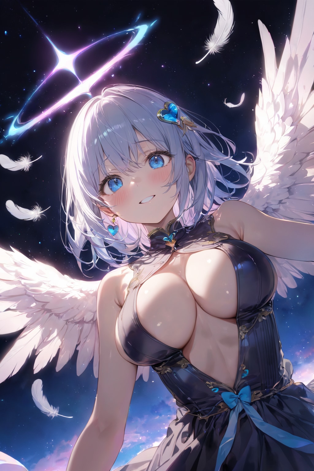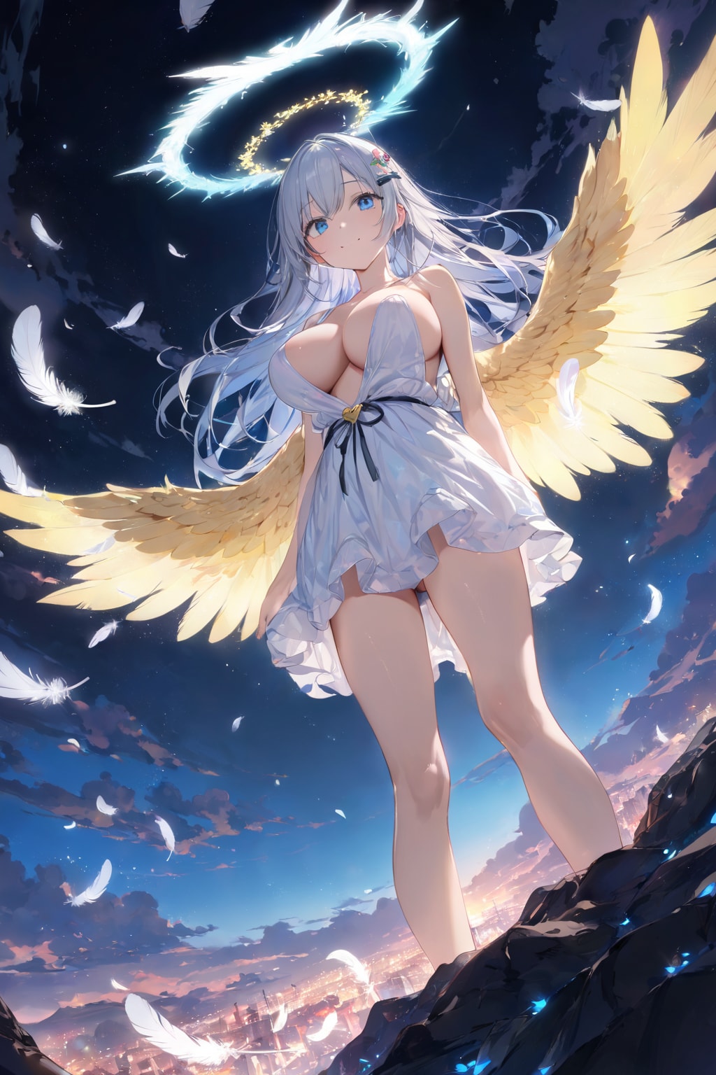 1枚目の街並みや夜明けの空を背景に、羽の舞う天使の構図が気に入ってます(´ω`*)