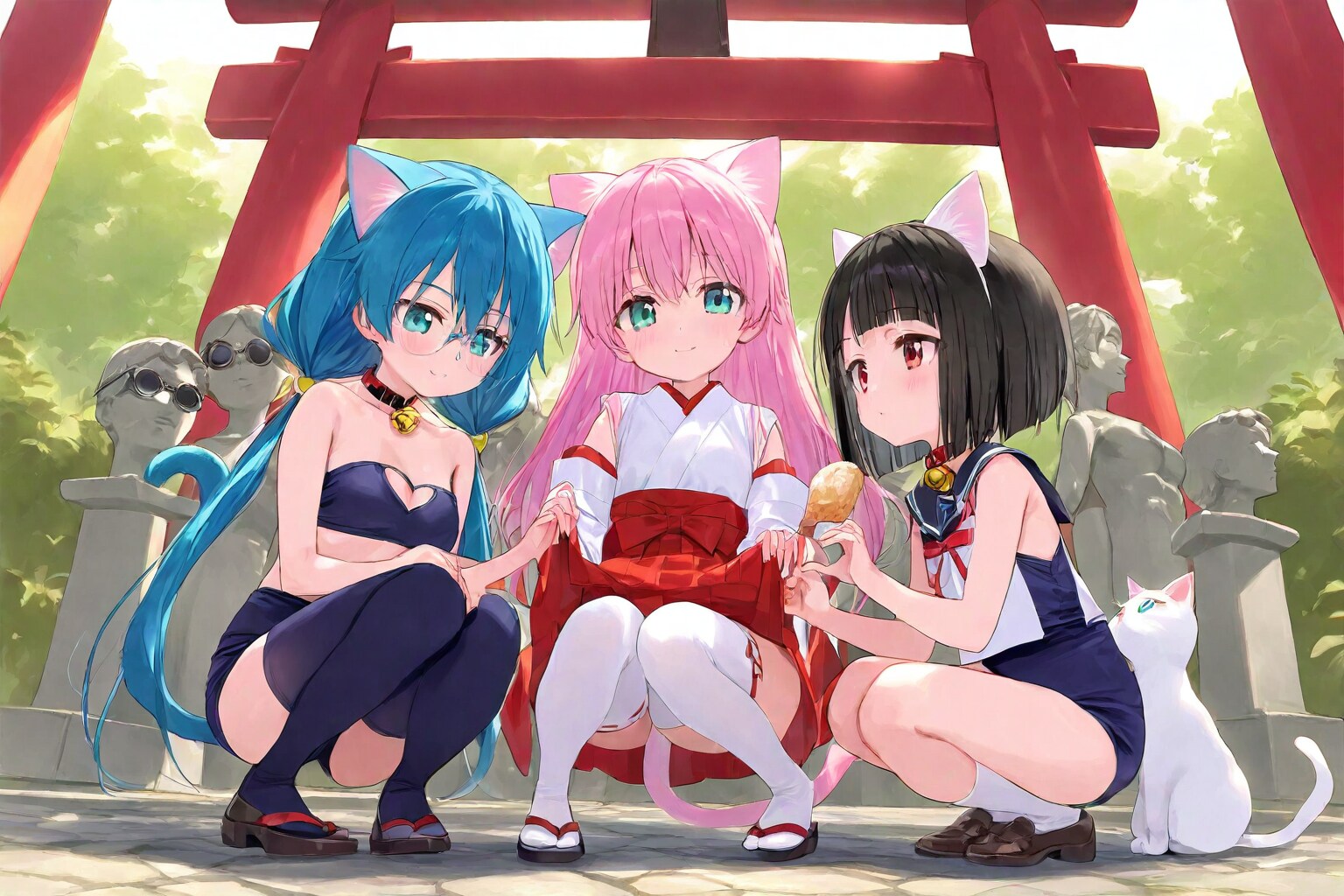 ⛩️猫耳神社🐱休憩中の巫女さんたち。巫女服とは?( ゚д゚)