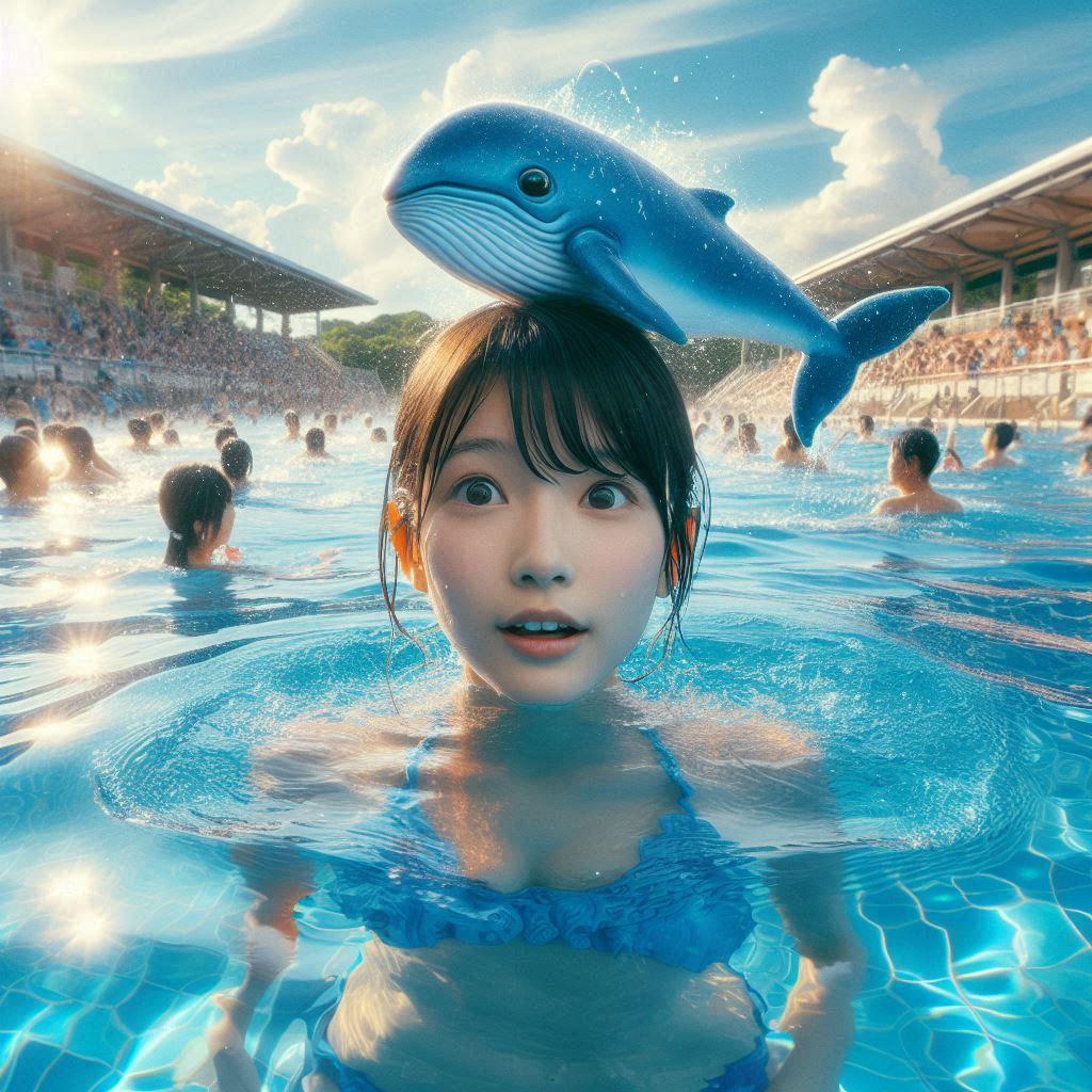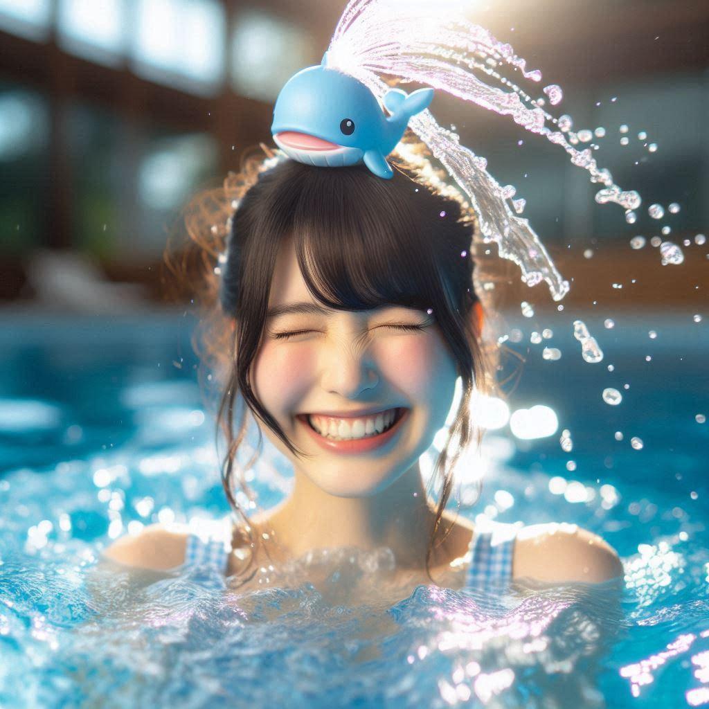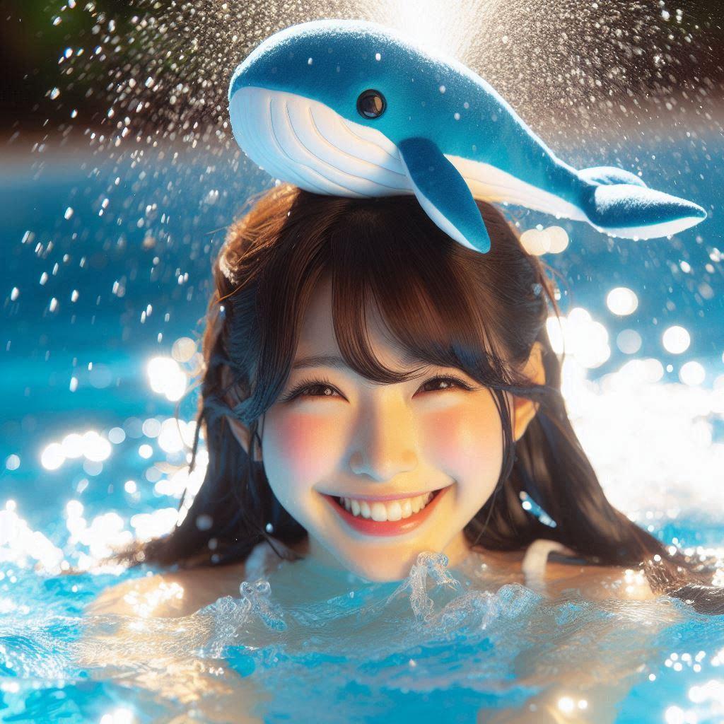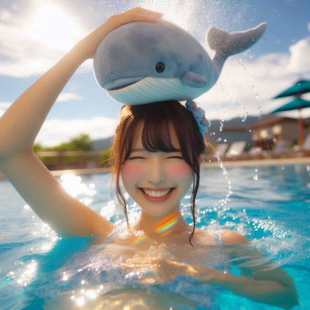 青空の下、プールでクジラちゃんと一緒に大はしゃぎ🐳🌈