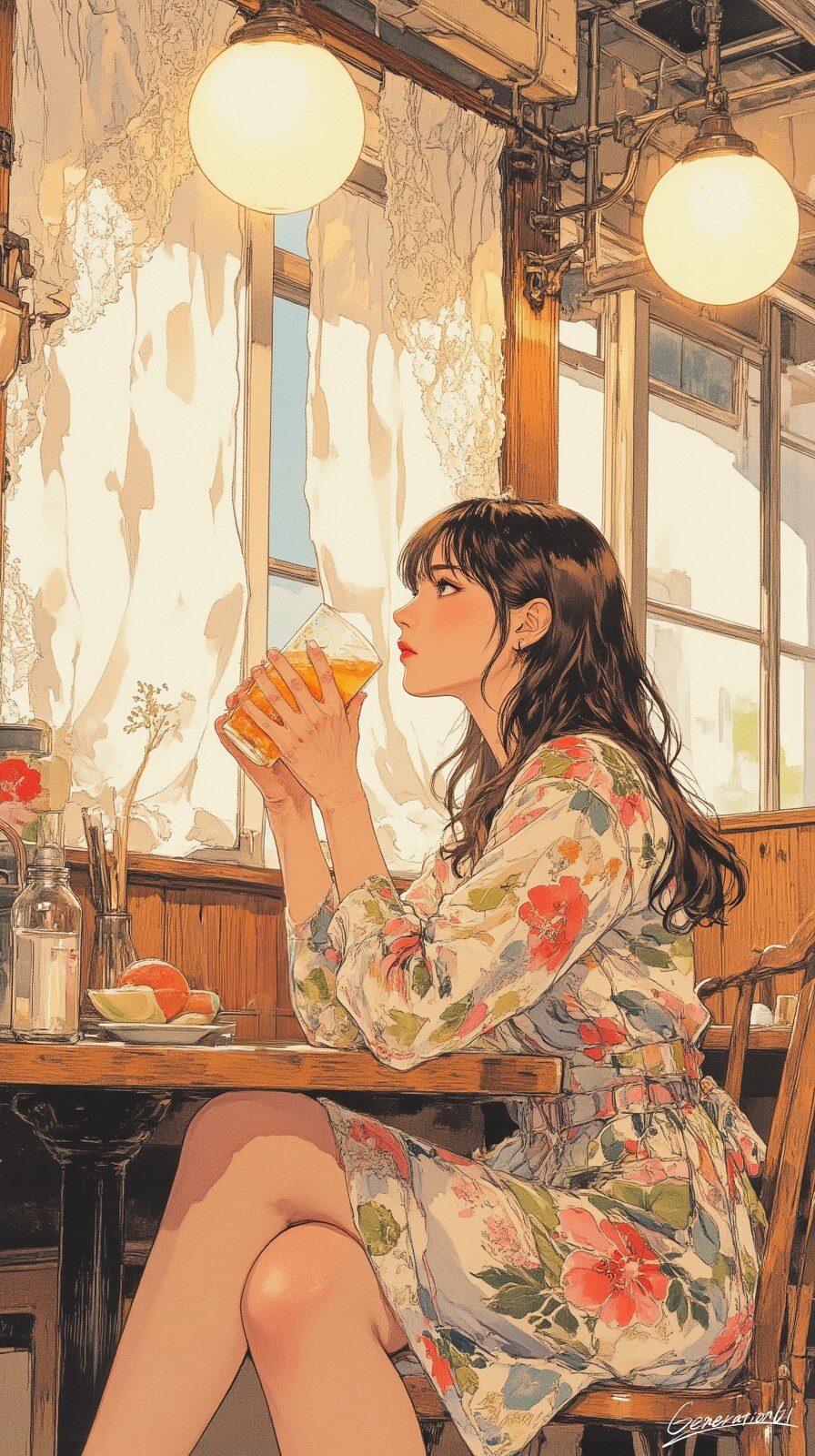 カフェの窓辺で/スマホ壁紙アーカイブ