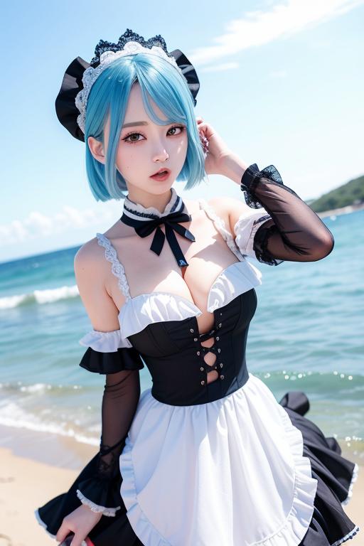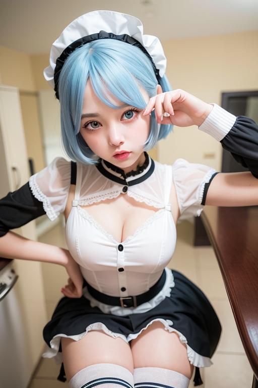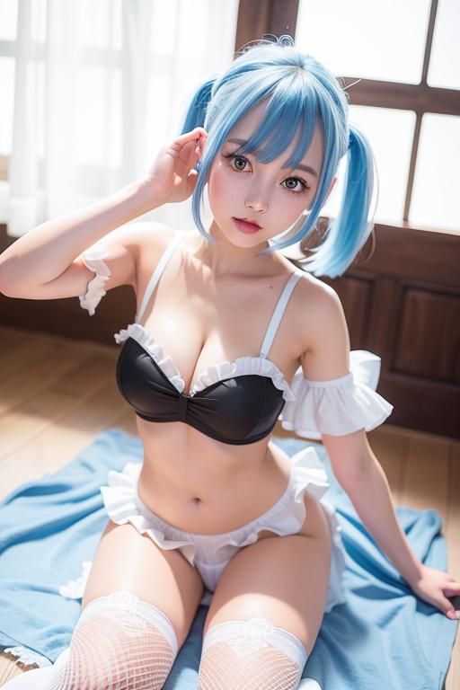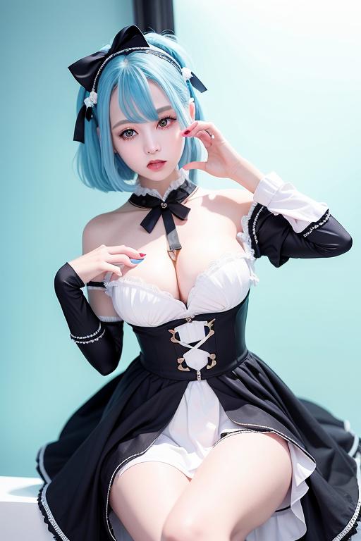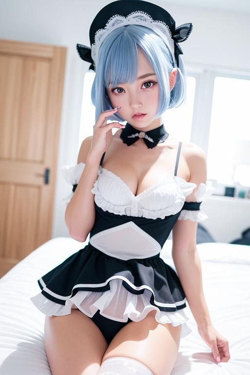 レムまたは綾波レイっぽいAI美少女コスプレイラスト