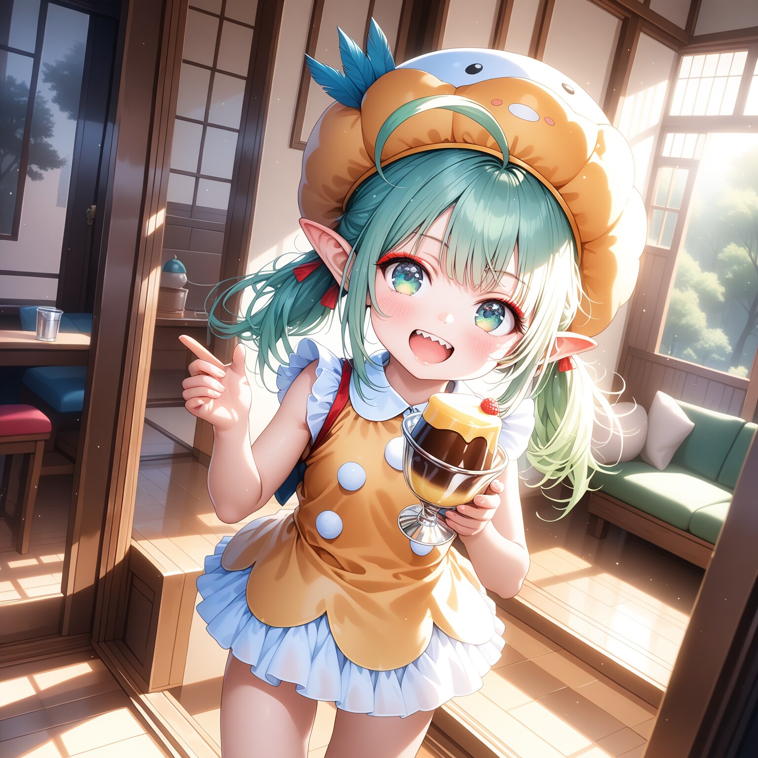 『きょうは、すいーつのひなんだって!……じゃあ、きょうはおひるも、ぷりんたべていいよね!』