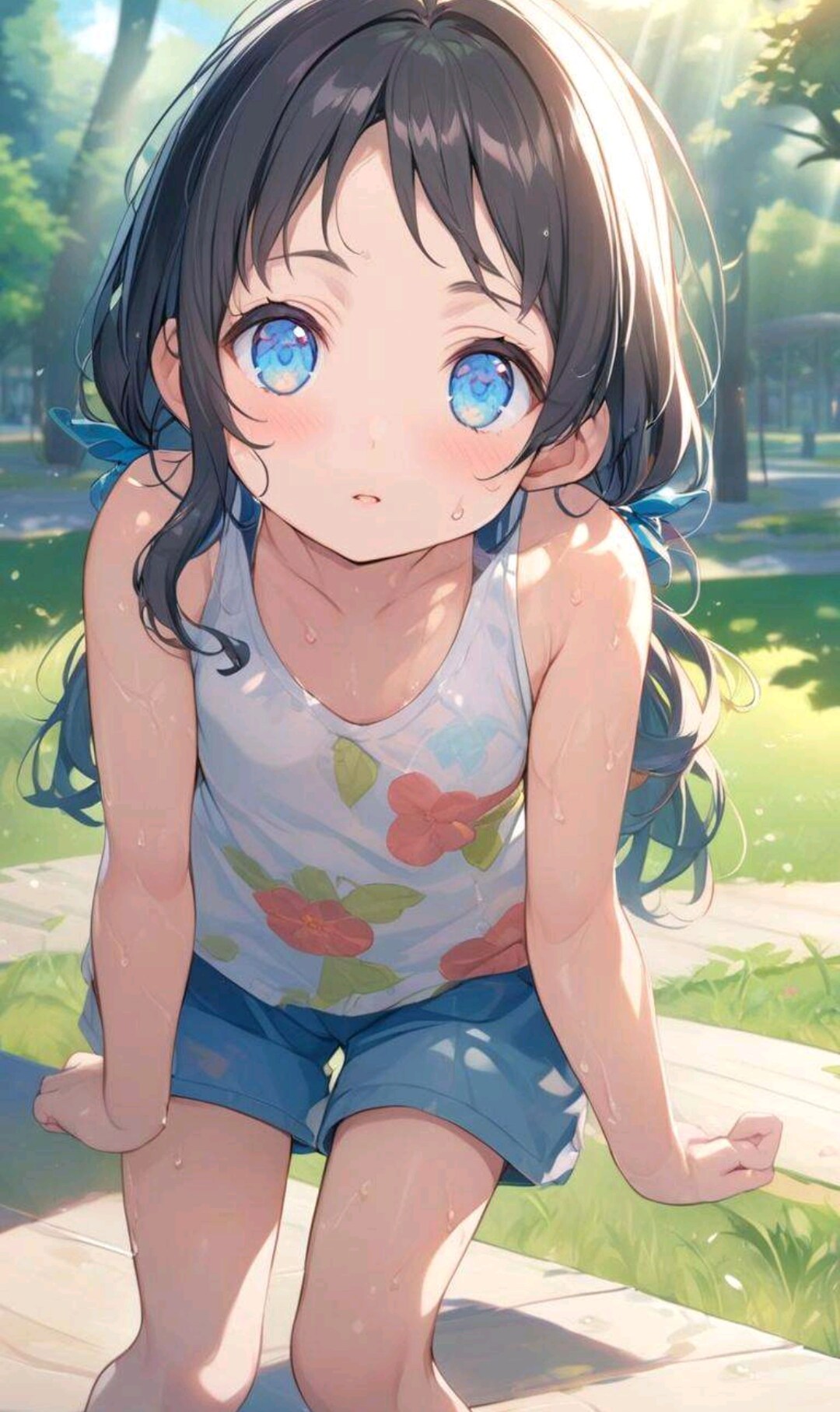 汗だくな小さな女の子