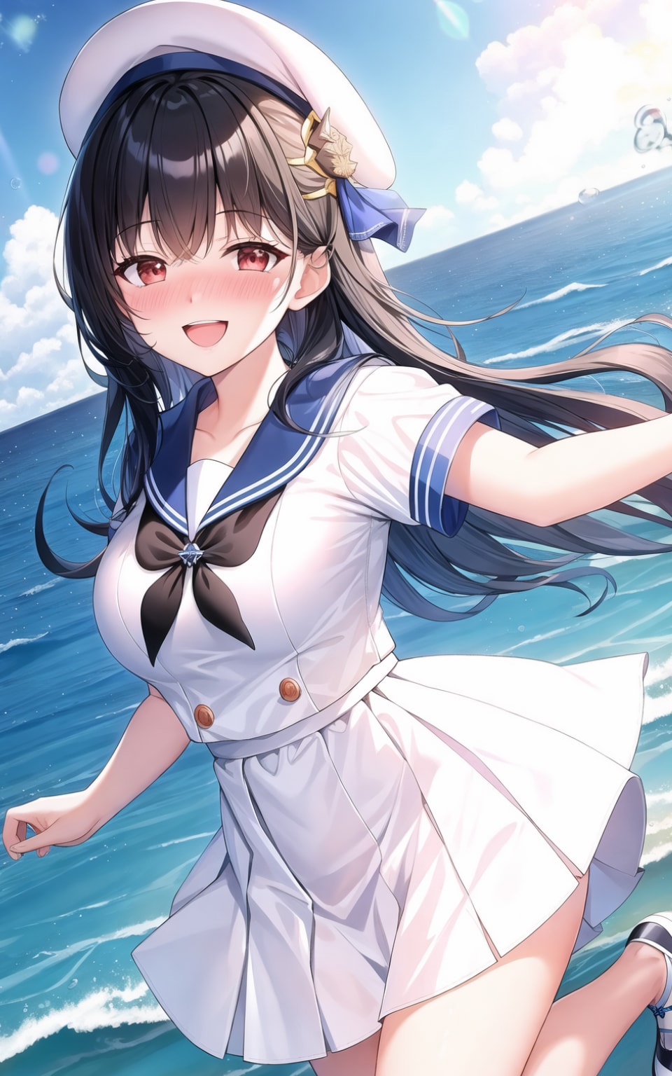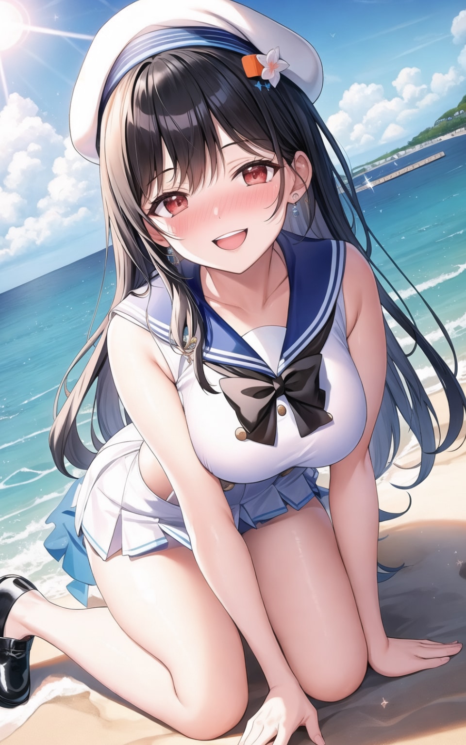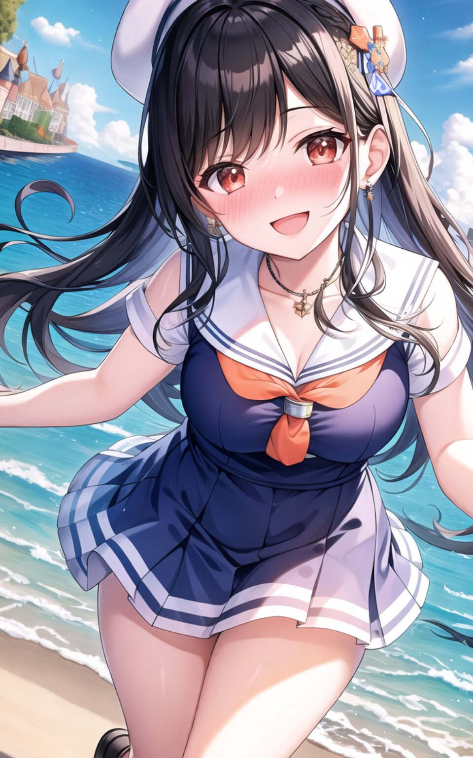 学校の制服としてのセーラー服というよりは、セーラー風な服といった感じで作成しました