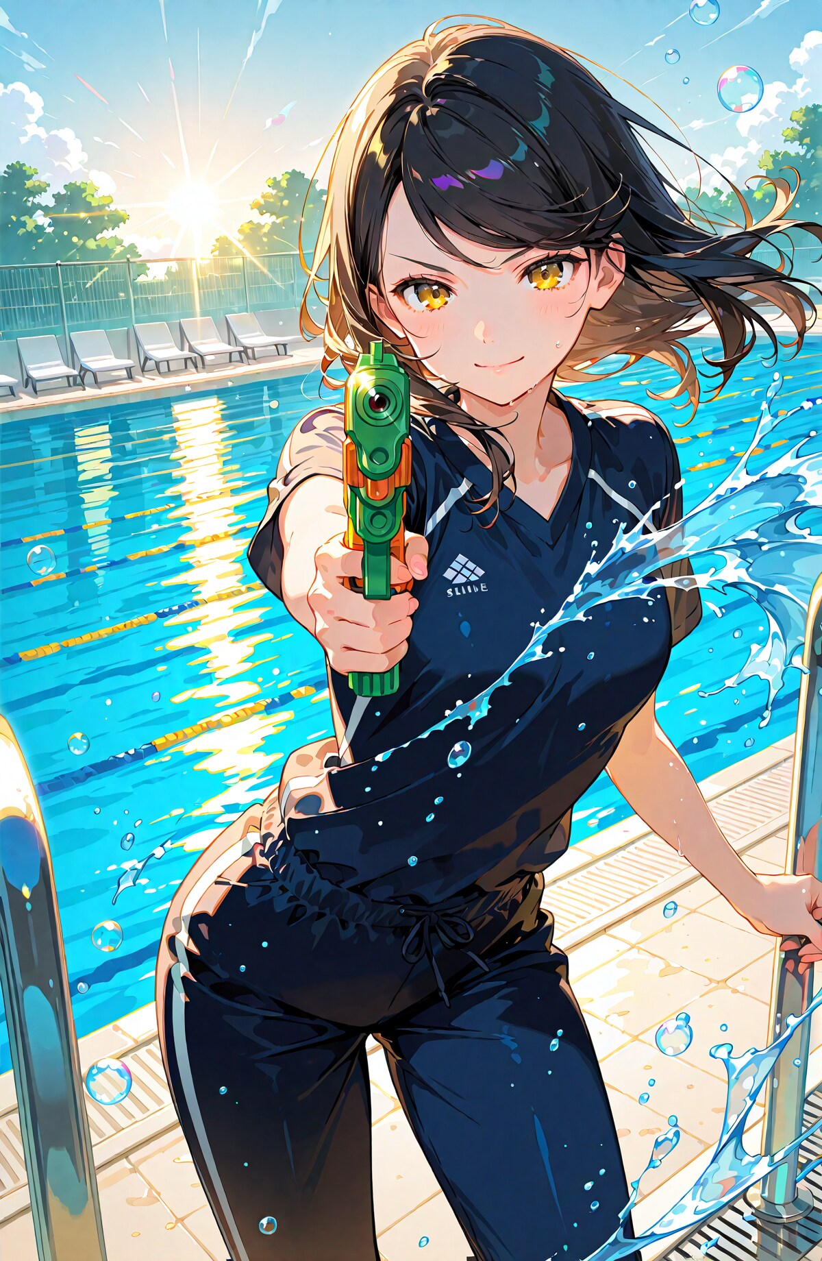 きっとこちらもガチでウォタガン大会に取り組んでくれることでしょう...とゆことで、今回も安直な水着ではなく本気のスポーツウェアで参戦なのです😁 1枚目のこちらは服のトップスは windbreaker を指定しています。