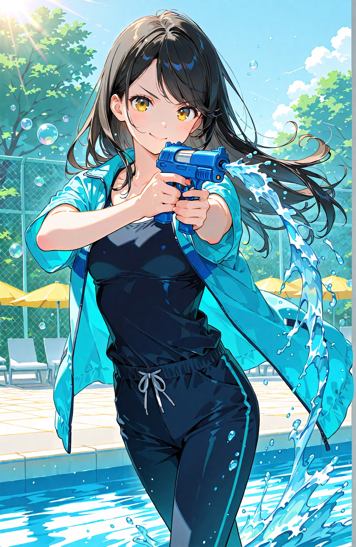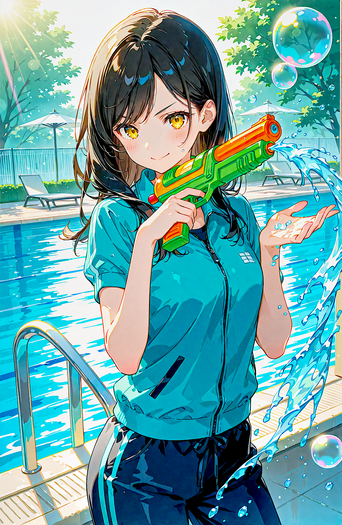 マシンピストルやショットガンぽくもある謎の水鉄砲を持ったりしてる別バージョンです。チャイナ風衣装も試してみたりしました。