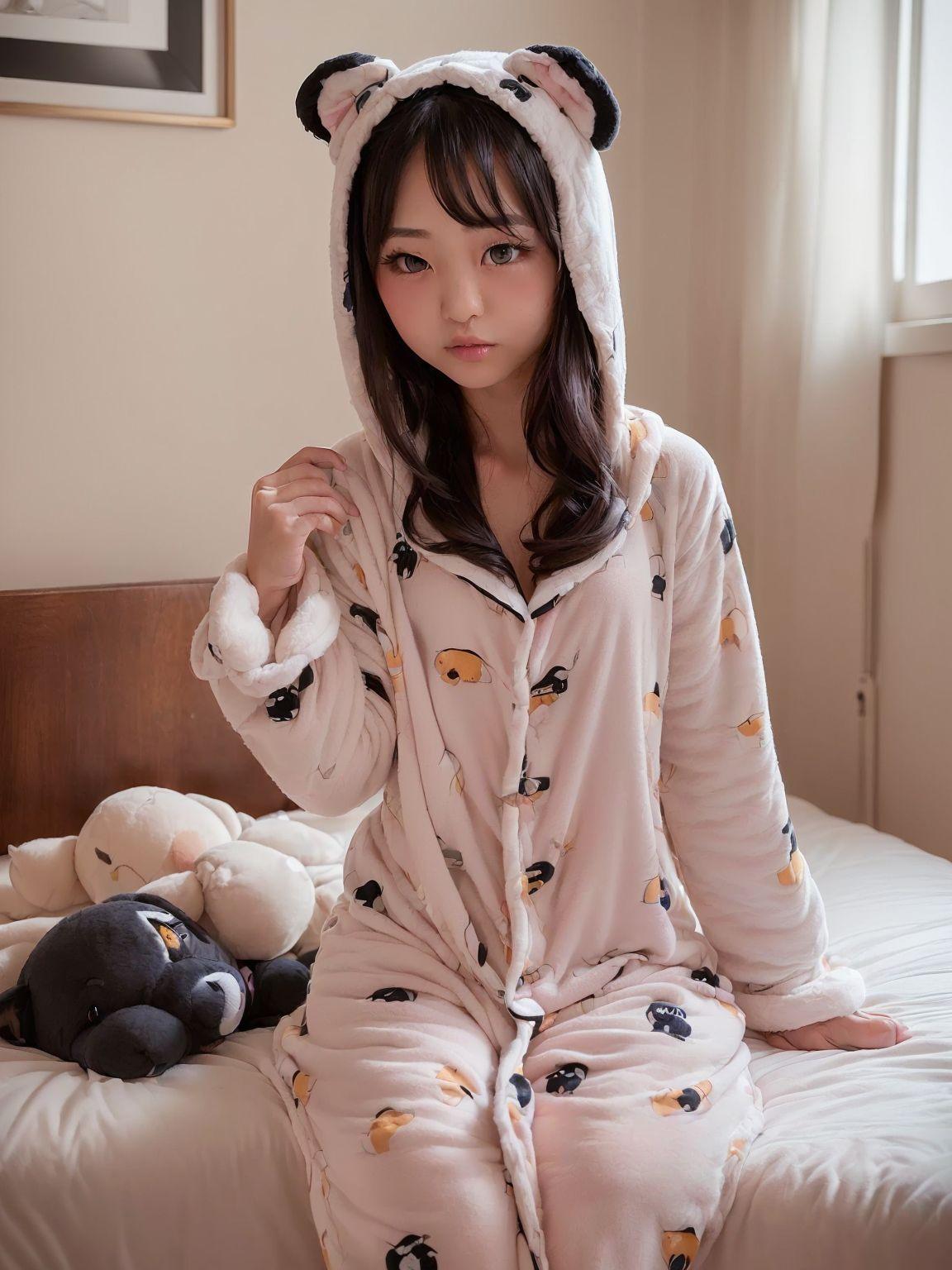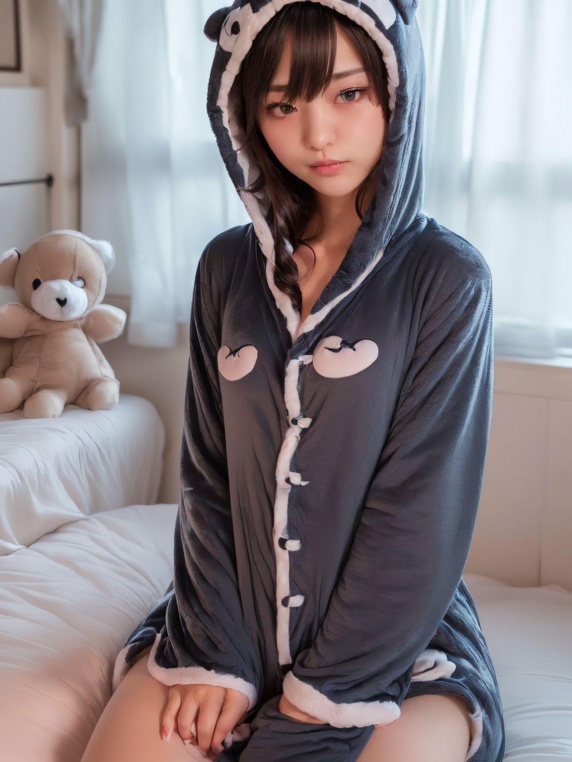 着ぐるみパジャマのちっぱい美女