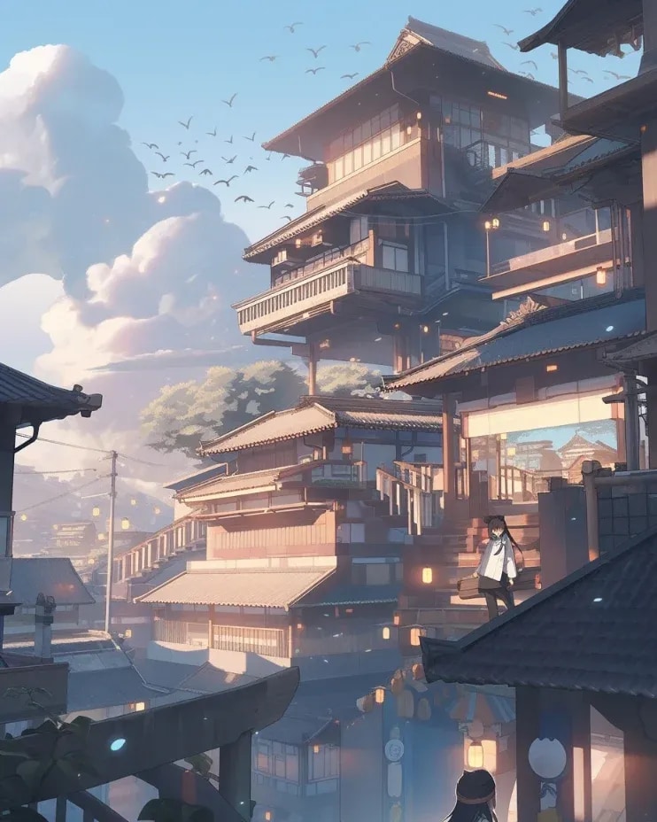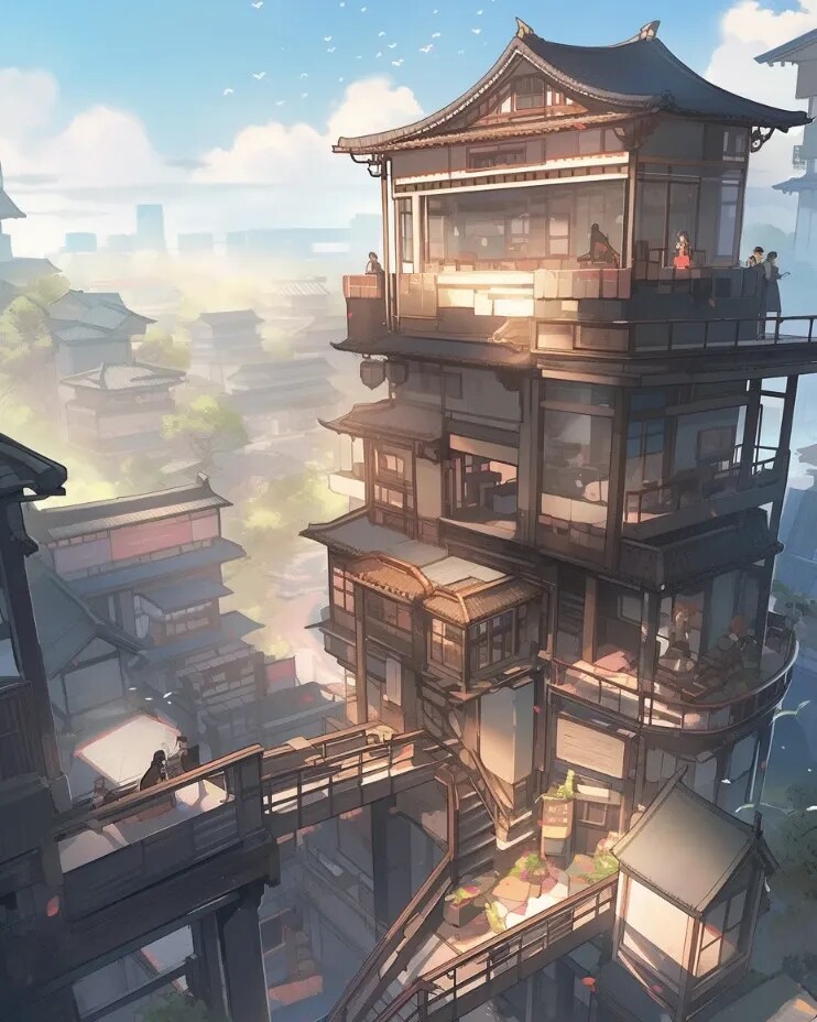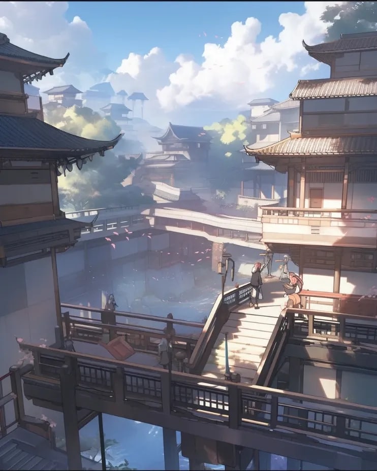 和風ファンタジーの町並み