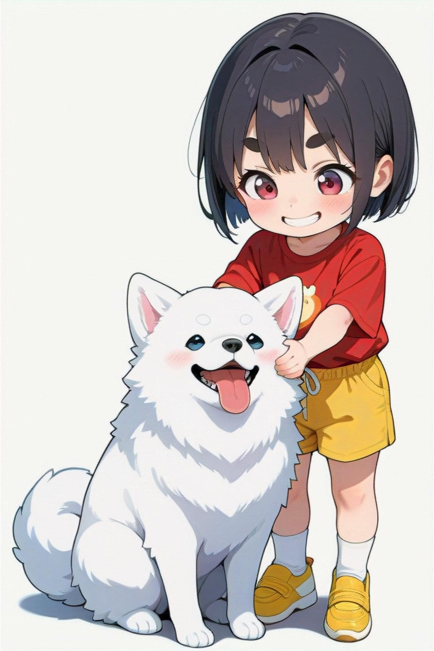 白い犬を家で飼っている男の子です