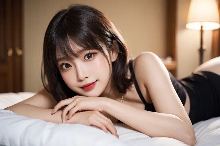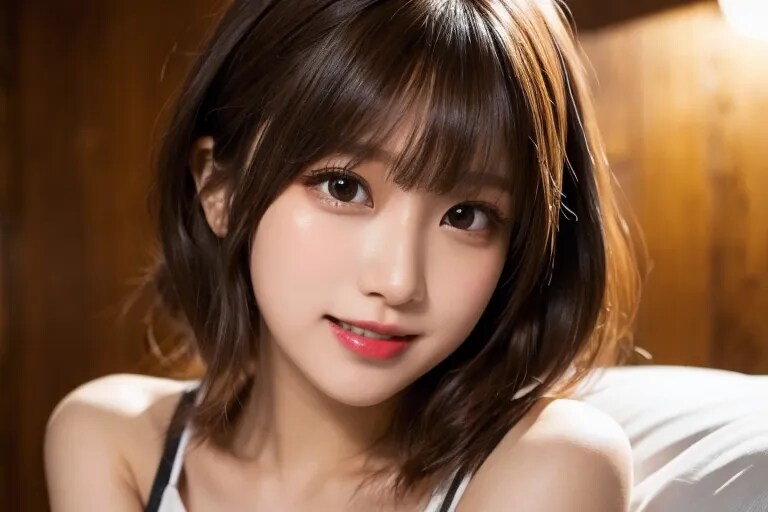 1女の子、かわいい日本の女の子の写真、(25歳:1.1)、かわいい顔、(傑作:1.2)、日本のアイドル、巨大な胸、ベッドに横たわっている、笑顔、ショートヘア、美しい詳細な目、細い体、寝室の背景、 ブレーク、非常に細かい目の定義、(対称的な目:1.3) 完璧にトリミングされた指、ブレーク、茶色の目、分けられた前髪、茶色の髪、ブレーク、(詳細な目と顔:1.1)、ブレーク、(傑作、最高品質、超詳細) 、詳細な顔、8k)